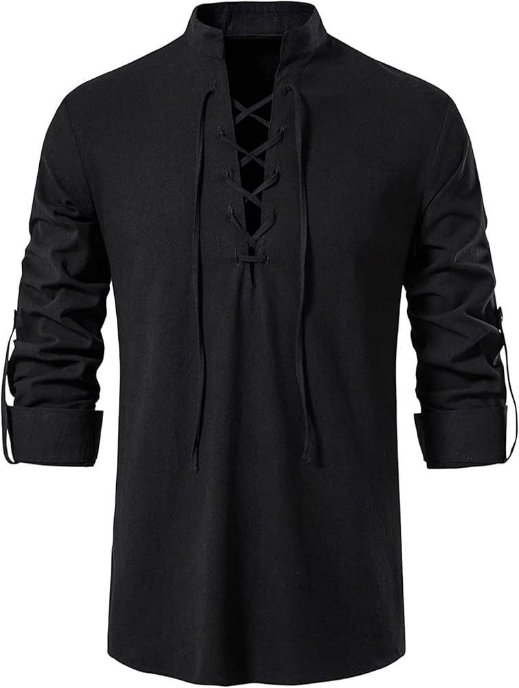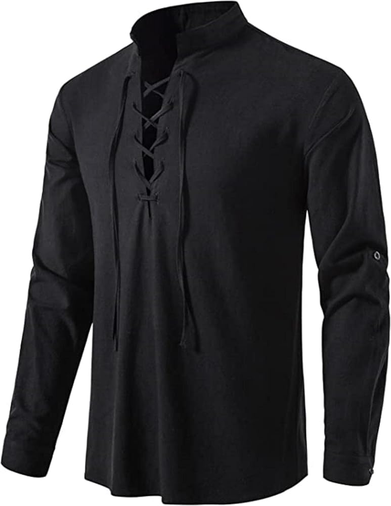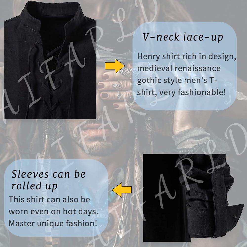 تصميم برباط: يتميز قميص عصر النهضة في العصور الوسطى بتصميم جديد مع تصميم برباط. تصميم الرباط يجعل المظهر العام أكثر كلاسيكية. ويمكن مطابقة هذا القميص مع أي سروال: على سبيل المثال، السراويل الكاجوال والأحذية البيضاء.