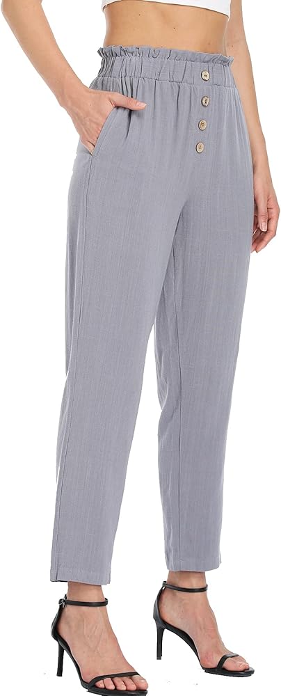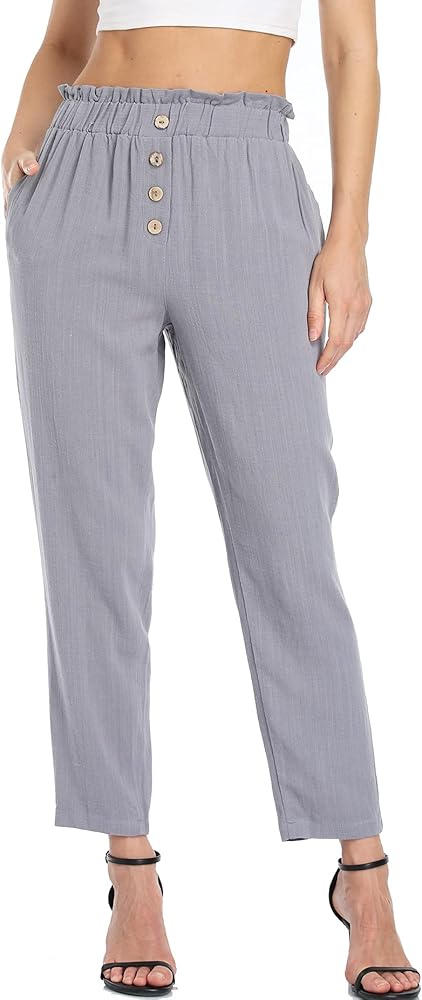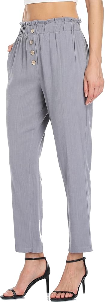 خفيف الوزن: مادة خفيفة للغاية قابلة للتنفس. بنطال الخصر المطاطي الناعم ذو الأرجل المستقيمة يجعل هذا البنطال أكثر مرونة لشكل جسمك للحصول على مقاس فضفاض. تضيف تفاصيل الأزرار سروالًا أنيقًا وعصريًا للسيدات.