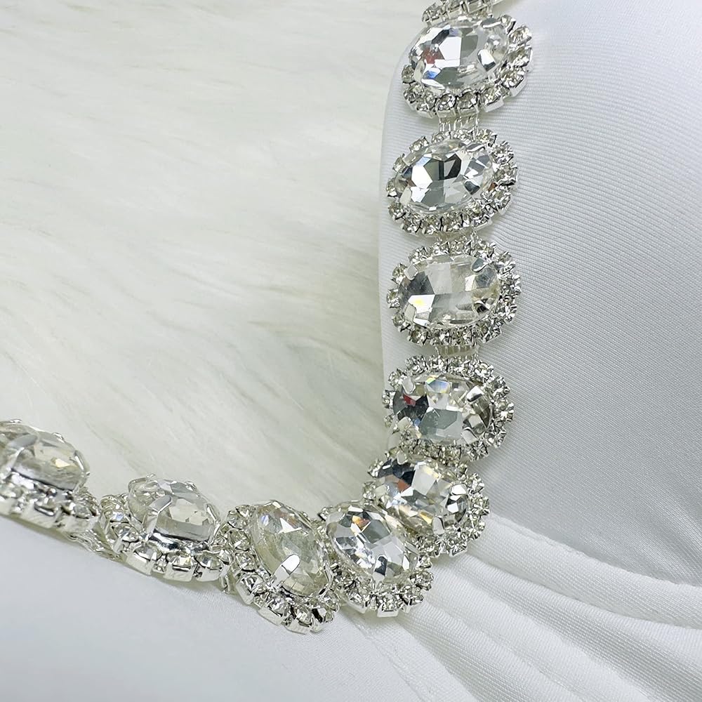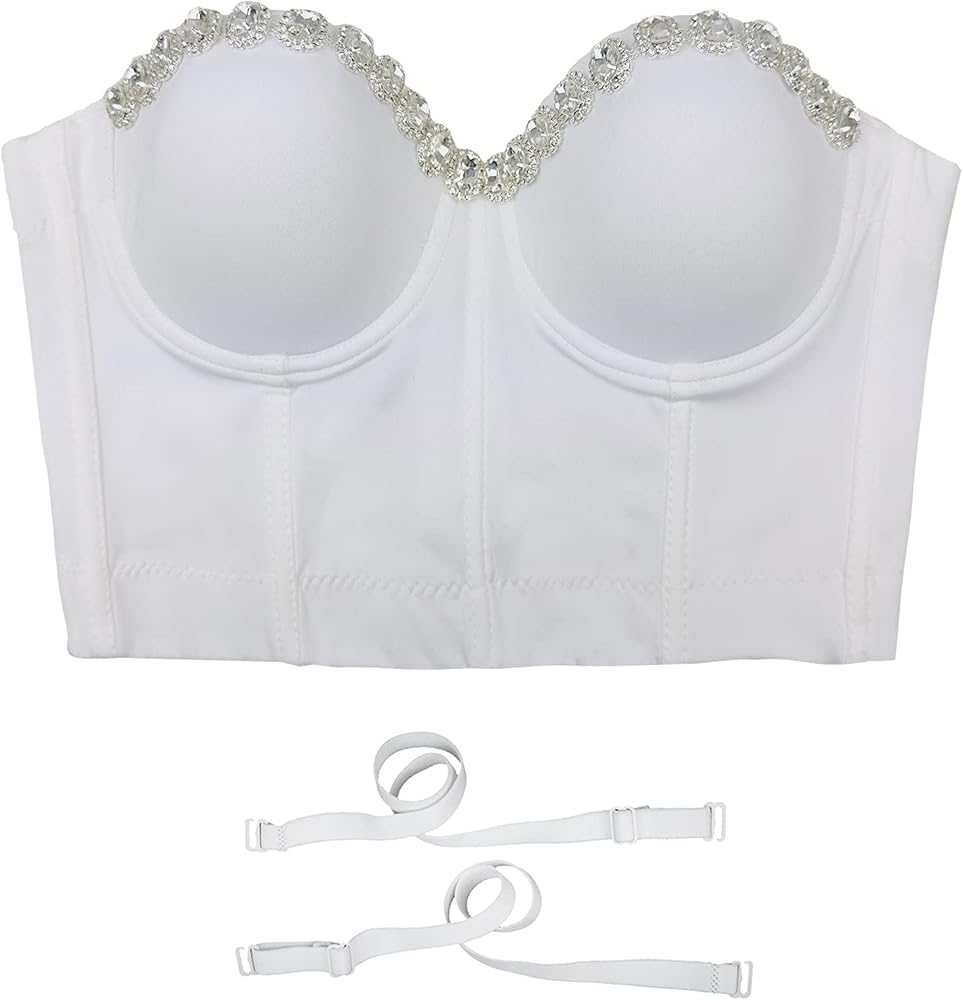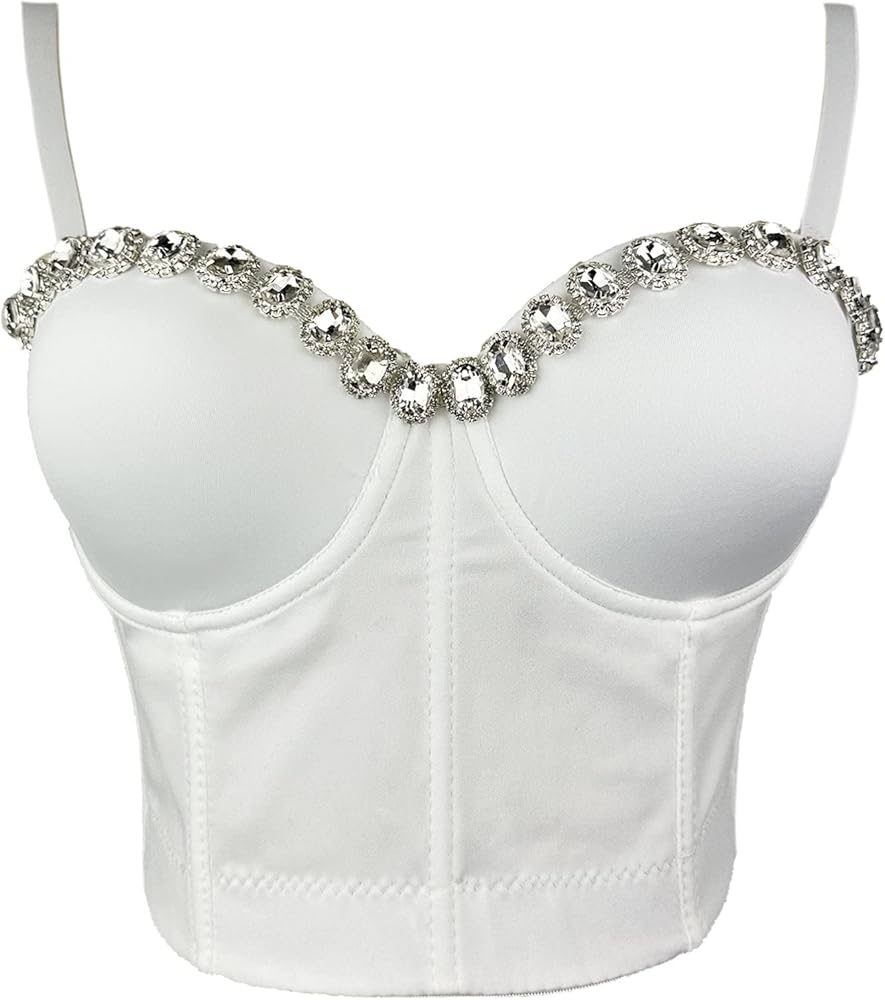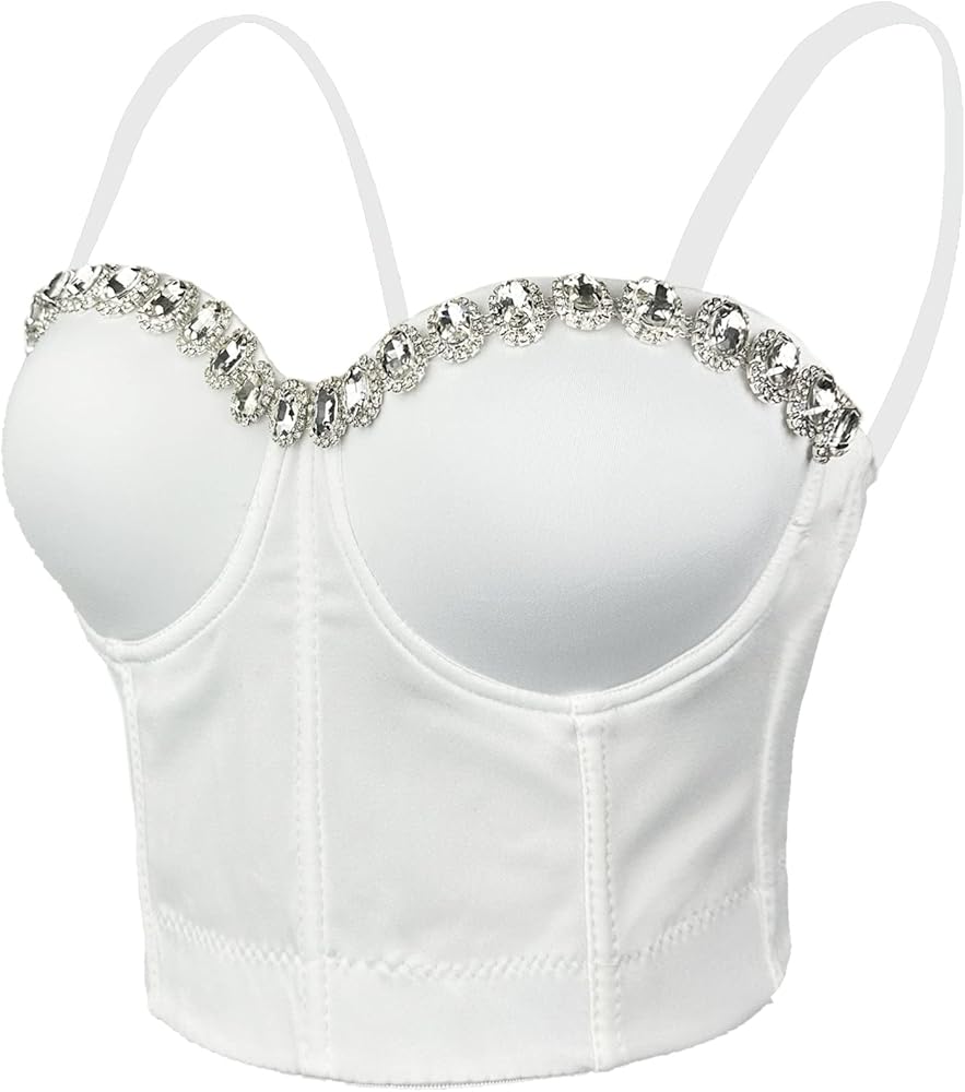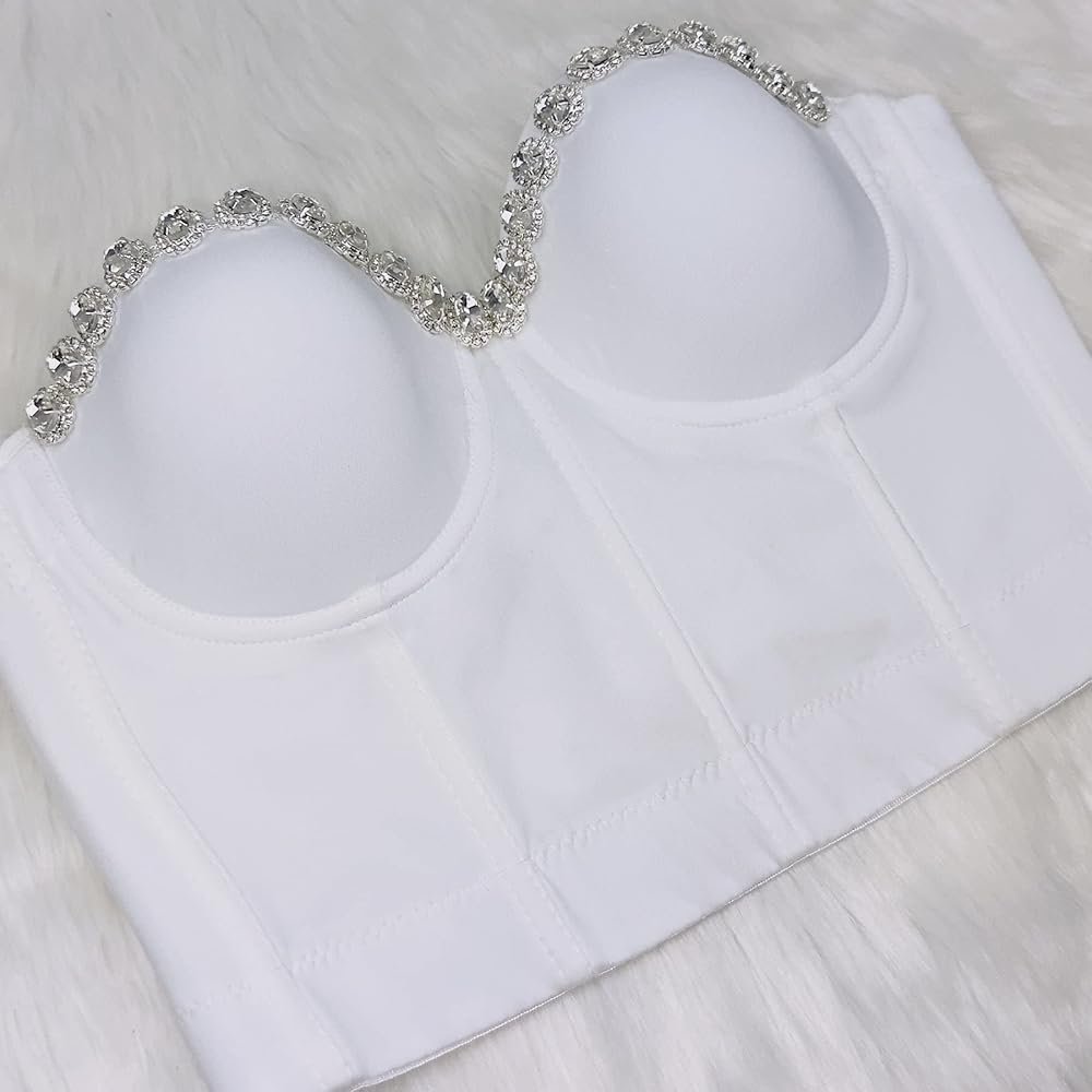 ELLACCI بلوزة نسائية بيضاء ناعمة مرصعة بحجر الراين مع أشرطة قابلة للفصل