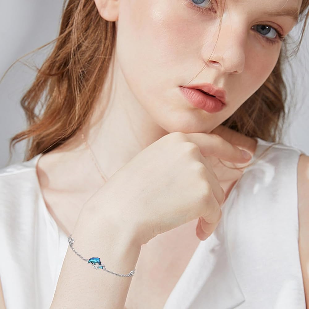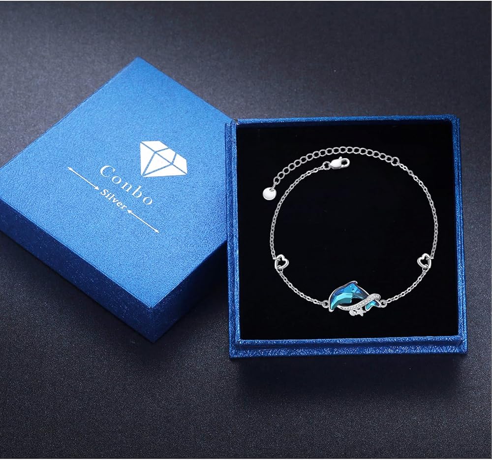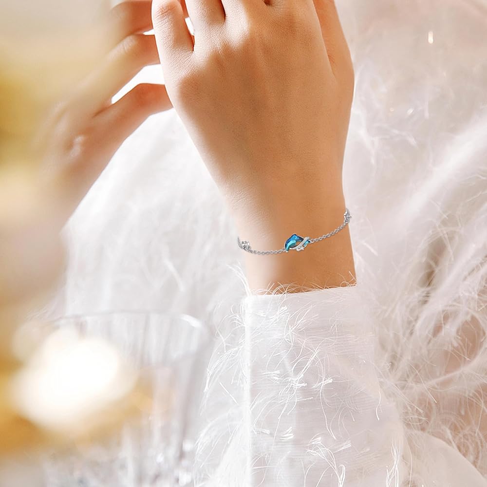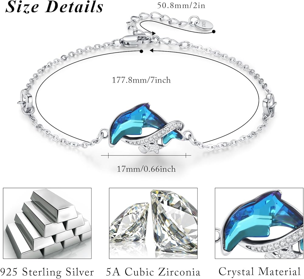 【🎁هدايا مجوهرات مثالية بطابع المحيط🎁】سوار دولفين للبنات من الفضة الإسترلينية رائع ولامع بشكل جيد بما فيه الكفاية ويأتي مع صندوق مجوهرات أنيق، مثالي لأي مناسبة لتقديم الهدايا. سوار مثالي بنمط المحيط هدية مجوهرات للأم أو الابنة أو الصديقة أو الزوجة أو الجدة أو الأخت أو الأصدقاء في عيد الأم أو عيد الميلاد أو عيد الشكر أو الكريسماس أو أي يوم خاص