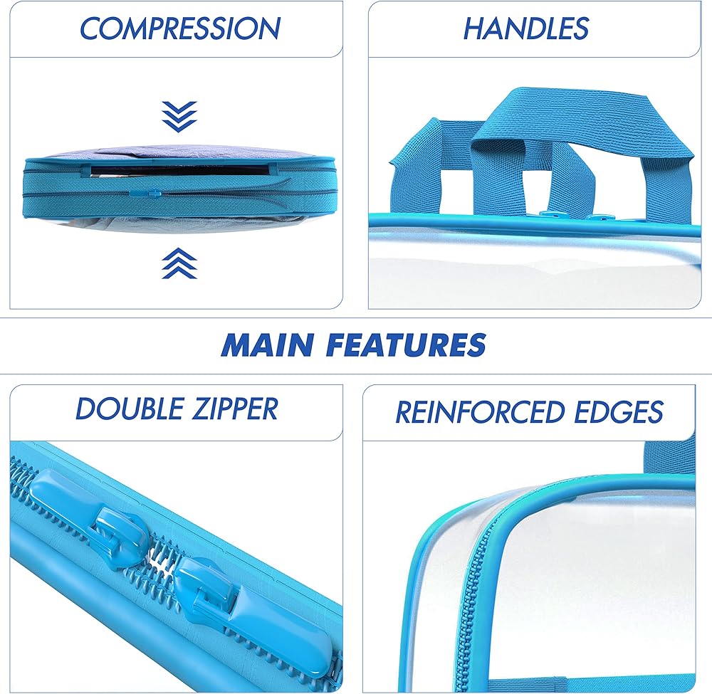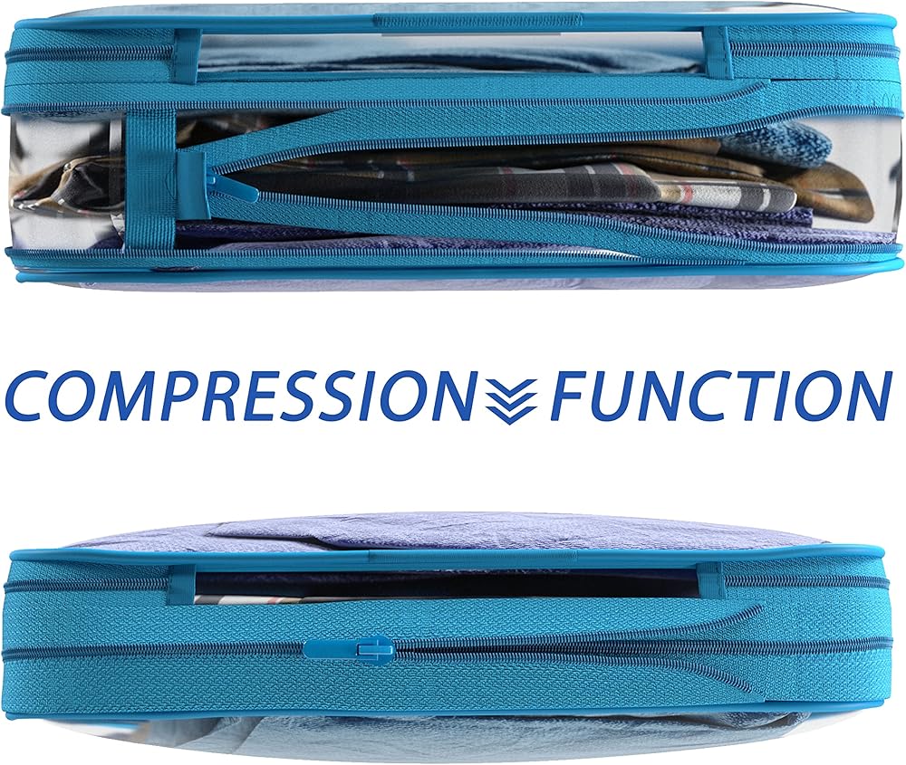 مكعبات التعبئة المضغوطة - تحتوي مجموعة مكعبات التعبئة هذه على وظيفة الضغط، مما يساعدك على توفير المساحة في أمتعتك. يرجى ملاحظة أن هذه الوظيفة لا يمكنها ضغط الملابس الضيقة.