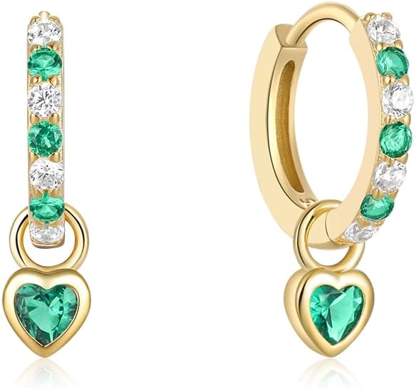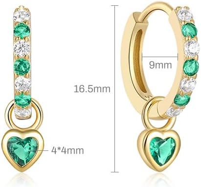 أقراط هوجي للنساء، أقراط على شكل قلب ذهبي صغير تتدلى من الزركون الأخضر المكعب، أقراط لا تسبب الحساسية، هدية بسيطة للفتيات المراهقات هدايا مجوهرات