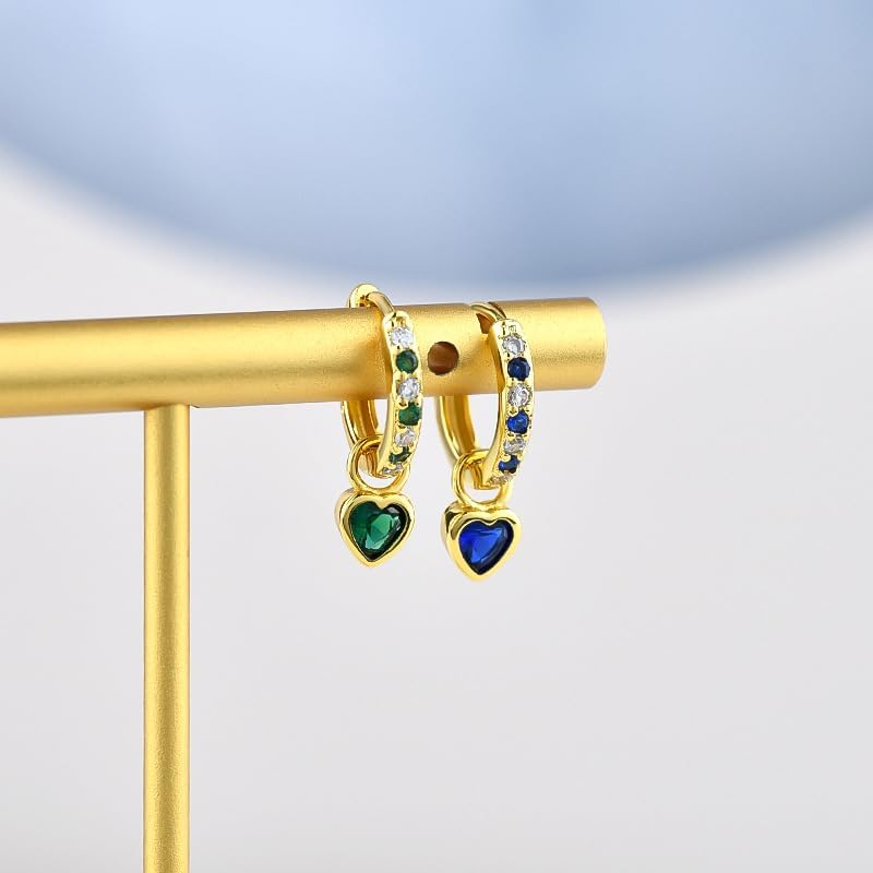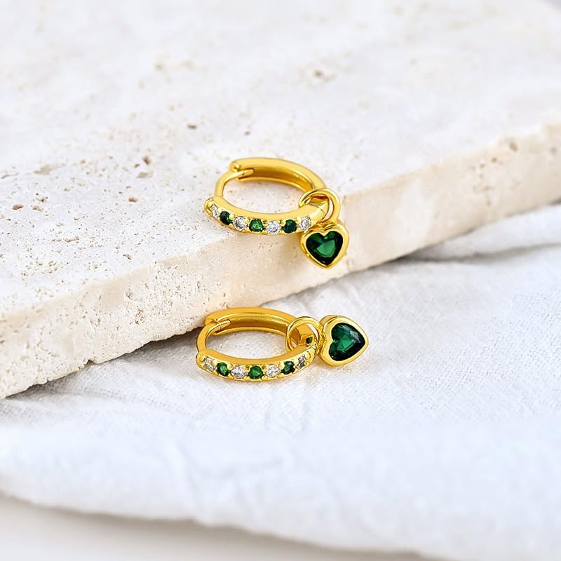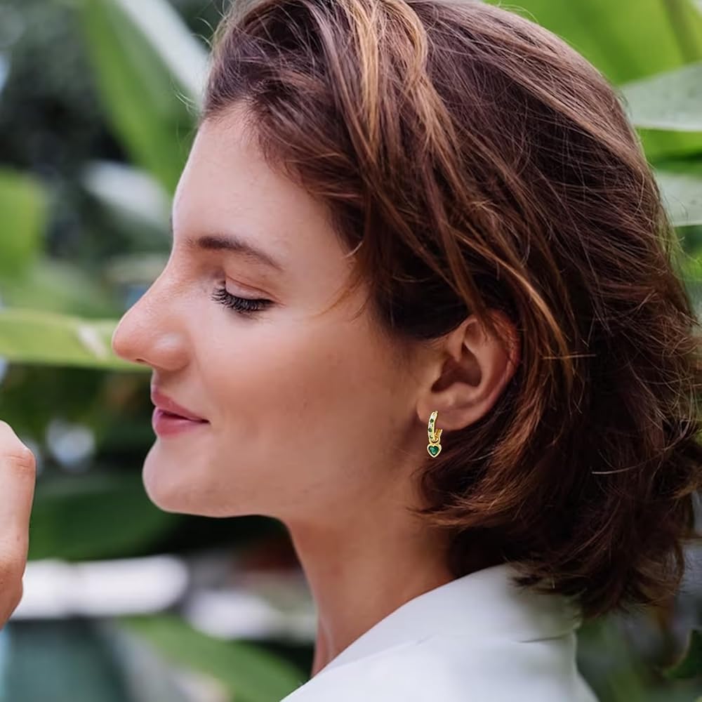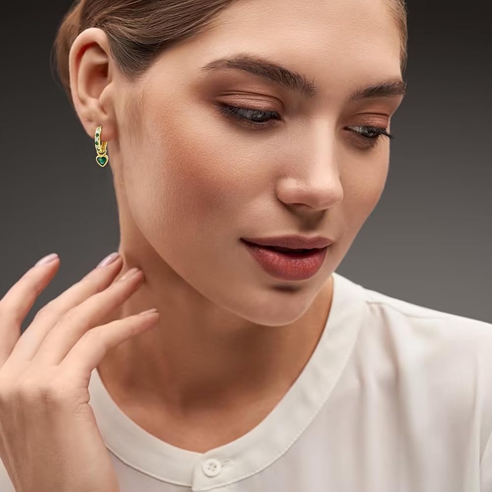 • 【تصميم قلب لافت للنظر】- تتميز هذه الأقراط المعانقة للسيدات بحلقة معانقة ذهبية صغيرة مع قلادة جميلة على شكل قلب مزينة بزركونيا مكعب أخضر.