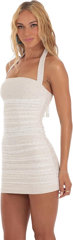 فستان قصير نسائي أبيض شفاف بدون أكمام للحفلات والنوادي