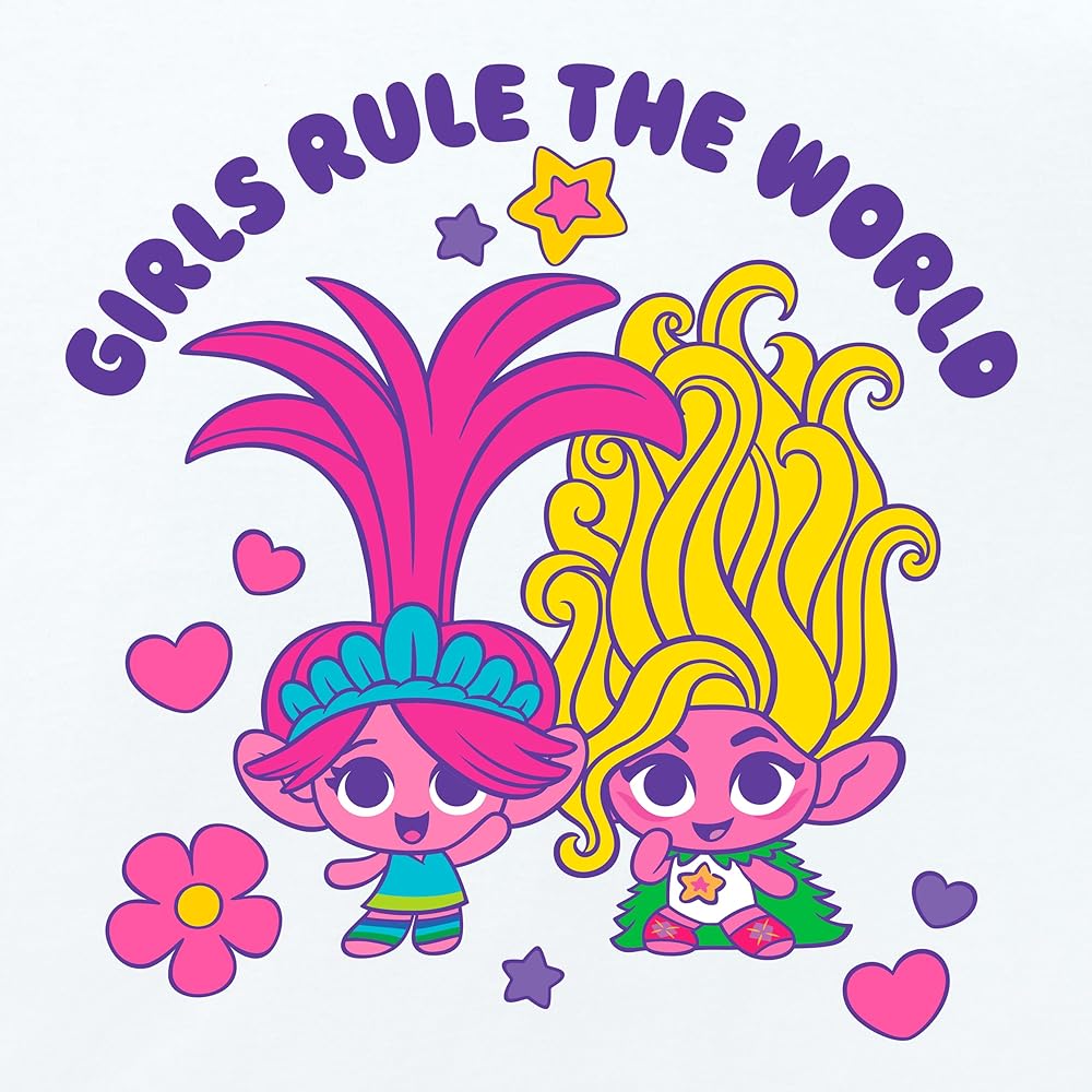 تي شيرت ترولز للفتيات غريب الأطوار: ادخل إلى عالم من المرح والألوان مع تي شيرت فيلم ترولز الرائع للأطفال! يتميز بوجود اثنين من ترولز النابضة بالحياة مع شعر وردي وأصفر مفعم بالحيوية، سوف يلمع طفلك الصغير بالبهجة في تي شيرت مفعم بالحيوية مثله. هذه ليست مجرد بلوزة للفتيات؛ إنها دعوة إلى عالم تحكم فيه الفتيات العالم محاطات بالزهور الوردية الساحرة والقلوب والنجوم.