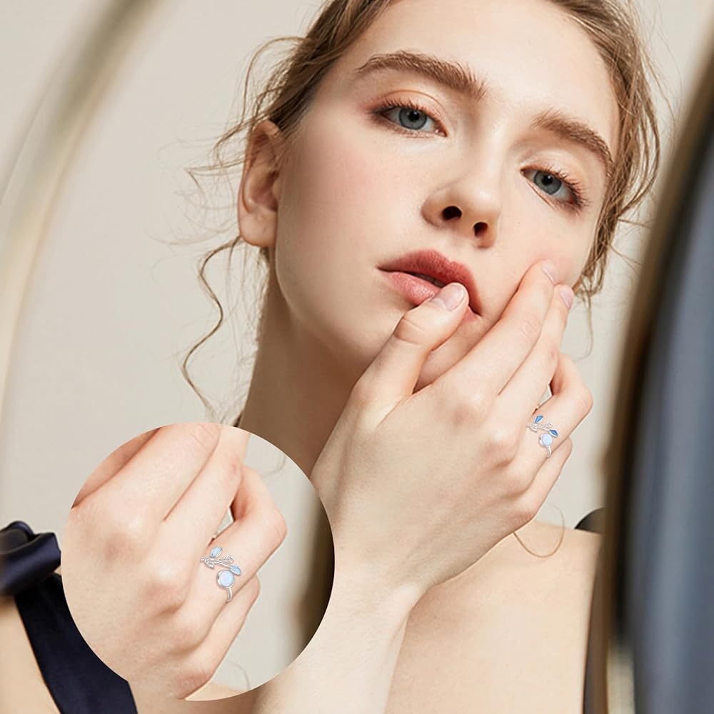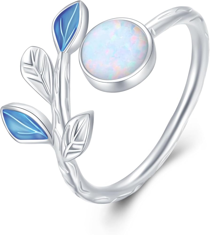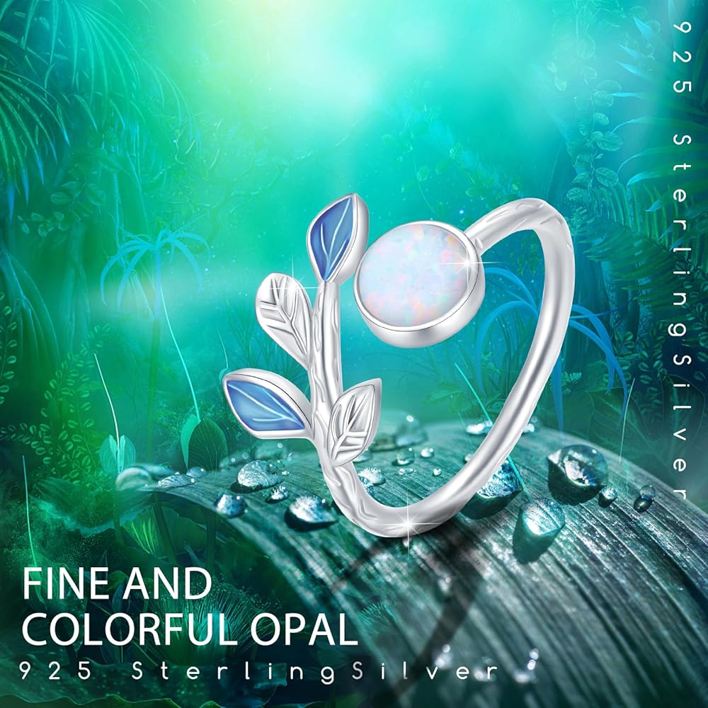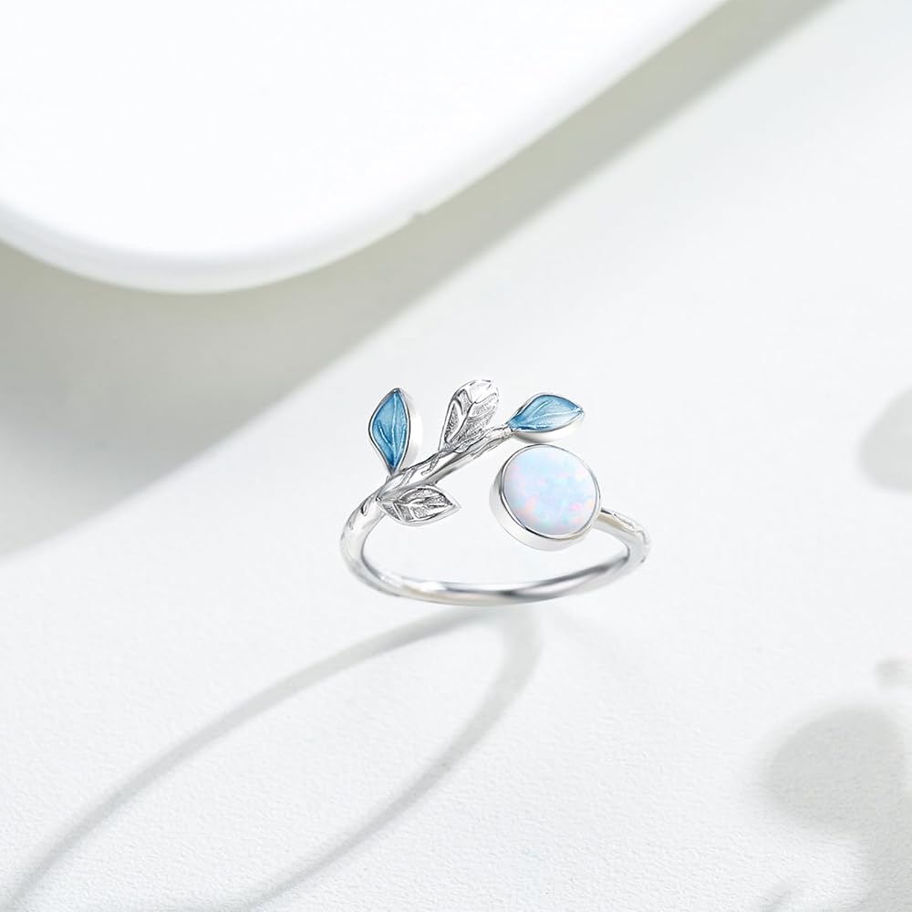 🍃【Perfect Gift for Her】💖The opal leaf ring will be packed in an elegant gift box. The dainty open rings for everyday wear. It is also the thoughtful gift for women, girls, Girlfriend, Lovers, Couple, Mom on Birthday, Christmas, Mother's Day, Valentine's day.