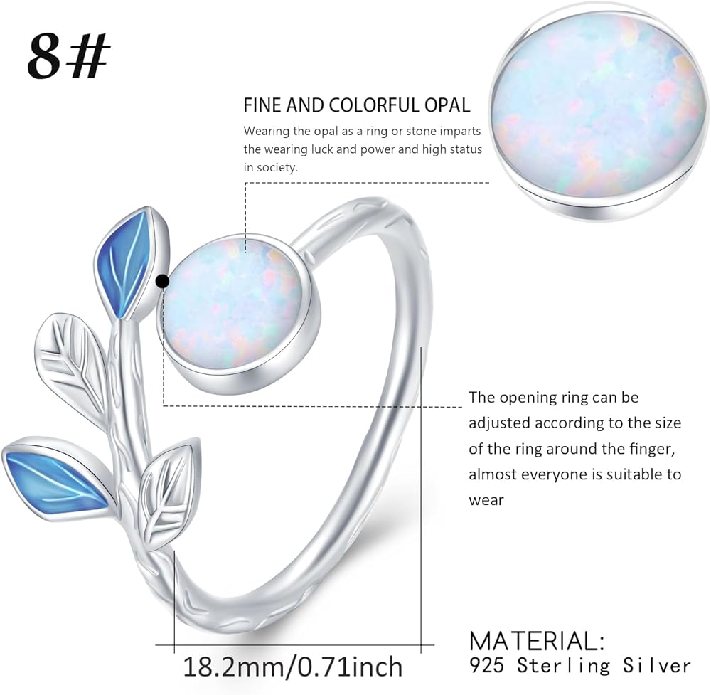 🍃【s925 Sterling Silver Hypoallergenic Jewelry】💖The leaves open ring is made of real 925 sterling silver and Opal. It's lead free ,nickel free ,non-allergic , they are hypoallergenic for sensitive skin, never worry about the opal leaf jewelry bothers you.