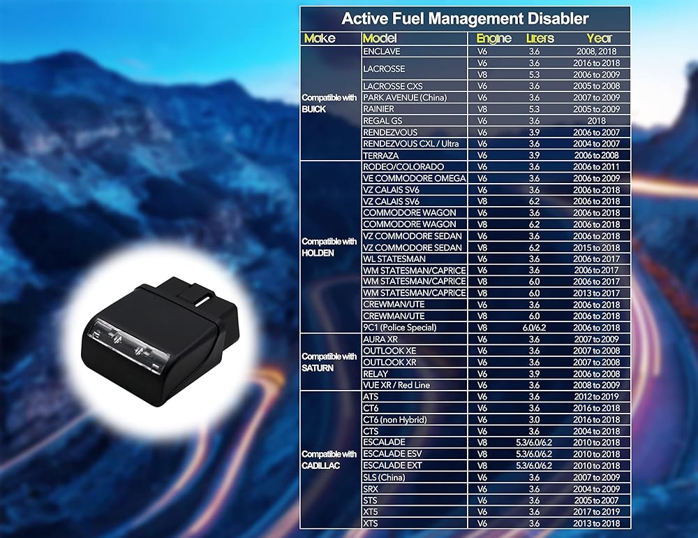 - متوافق مع سيارات جي ام V6 أو V8. حافظ على سيارتك في وضع الأسطوانة الكاملة طوال الوقت.