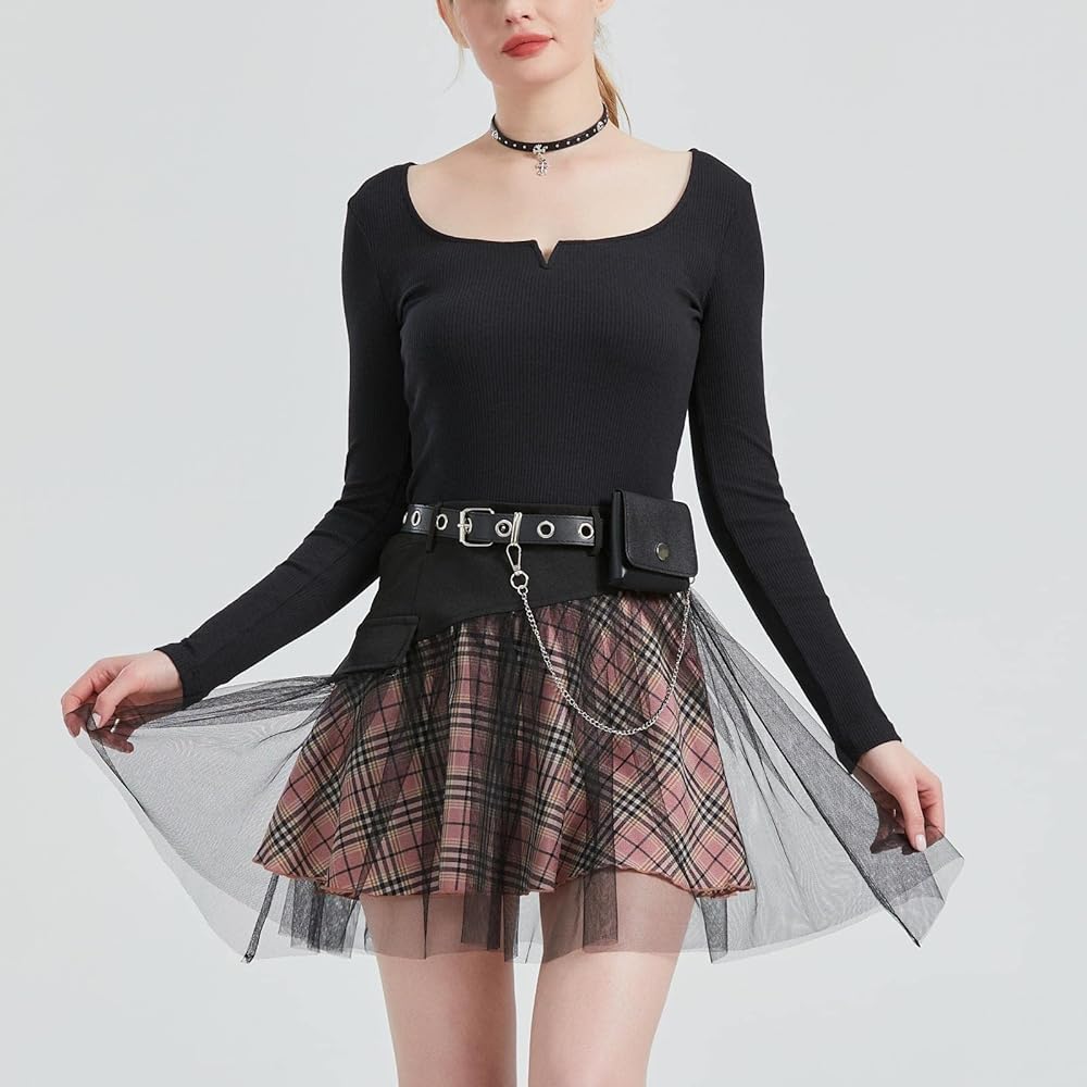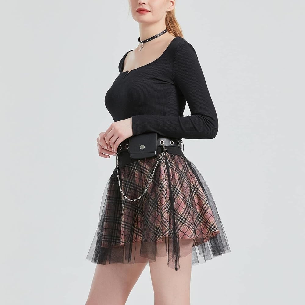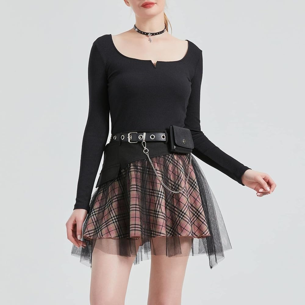 👗المميزات - تنورة شبكية قوطية على شكل حرف A، تمت حياكتها بشبكة عالية الجودة وخياطة منقوشة، والخصر مجهز بأشرطة مطاطية لزيادة المساحة المرنة. إنها مناسبة لملابس الشوارع للمراهقين والفتيات الشريرات، وتتميز بالشخصية والجاذبية.