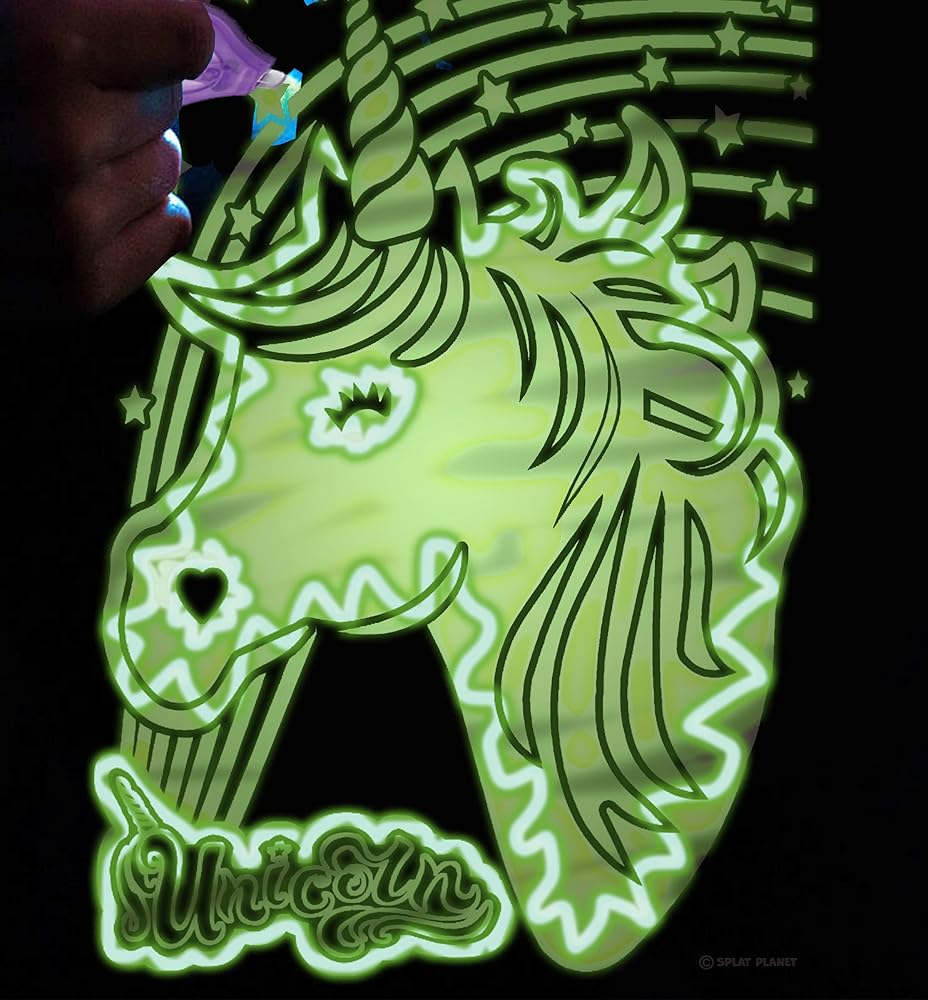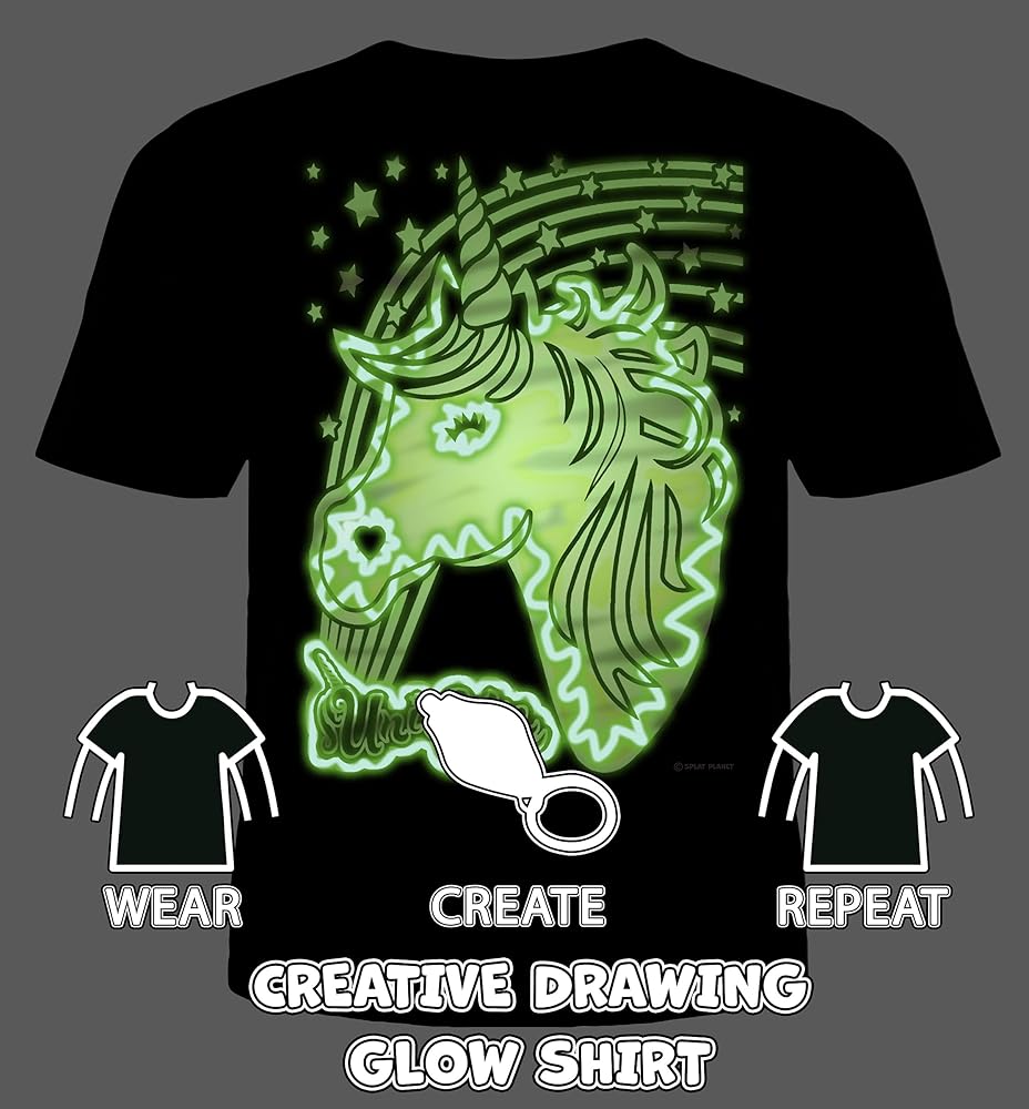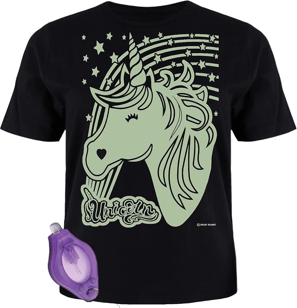 Splat Planet - تي شيرت Unicorn Magic Creative يتوهج في الظلام مع شعلة قلم متوهج بالأشعة فوق البنفسجية للأطفال