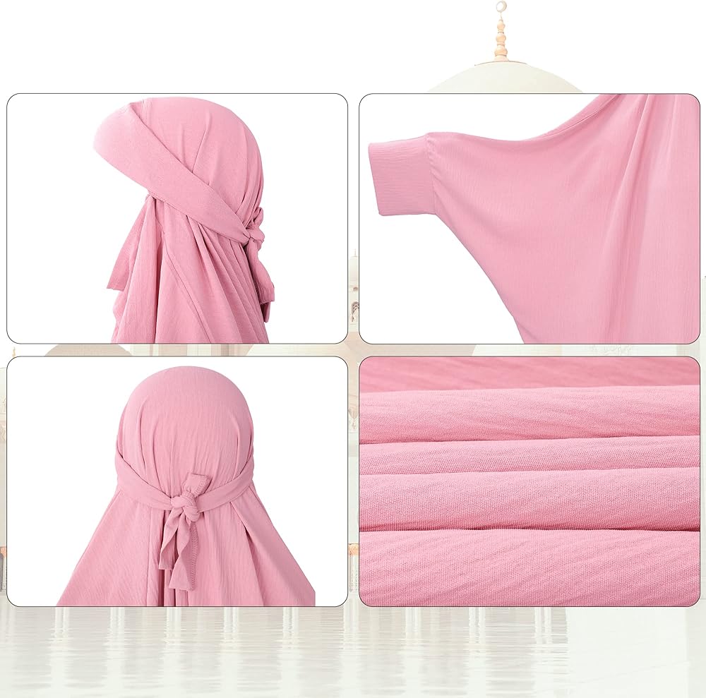 [المميزات] يمكن ربط ربطات حجاب الجلباب خلف الرأس لتغطية الشعر جيداً وعدم ارتخائه. الطول الإجمالي لثوب صلاة المسلمين يمكن أن يغطي القدمين، كما أن مادة الرداء ليست شفافة، لذلك لا تظهر الشكل. أكمام الخفافيش الفضفاضة مريحة جدًا للأنشطة اليومية.