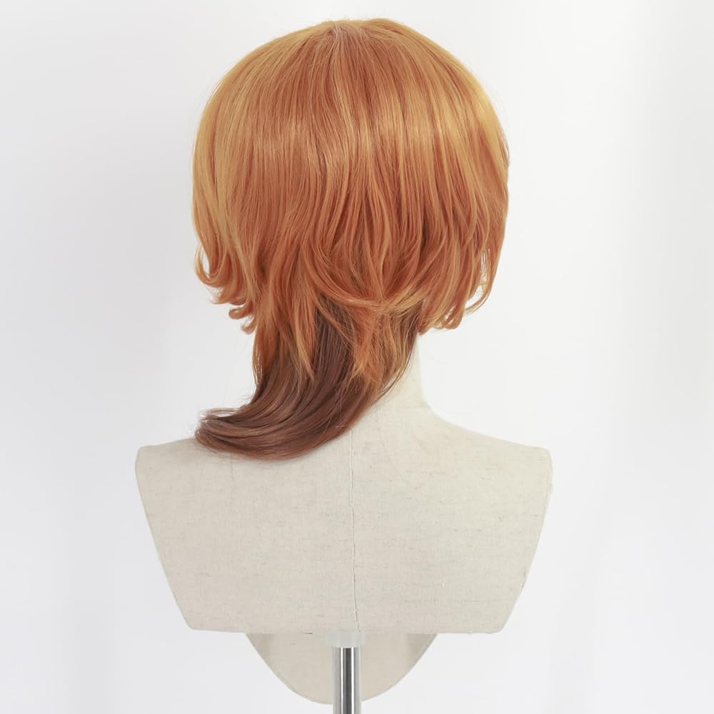 Dark Orange Ombre wig Mid-length for Adult Cosplay Costume Heat Resistant Halloween Party Wig with Wig Cap