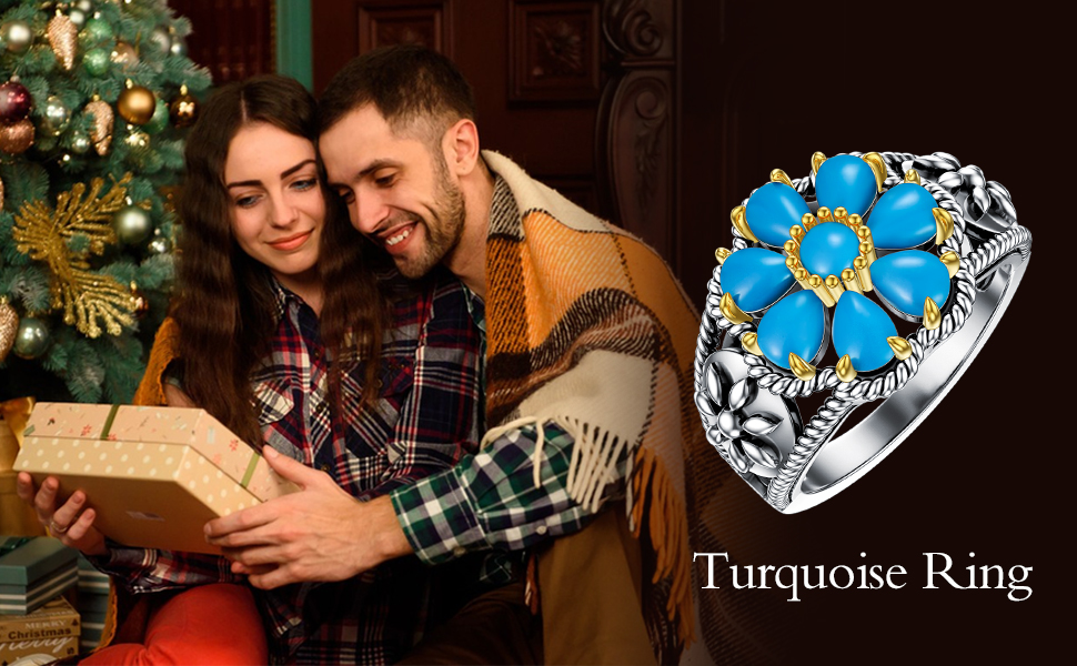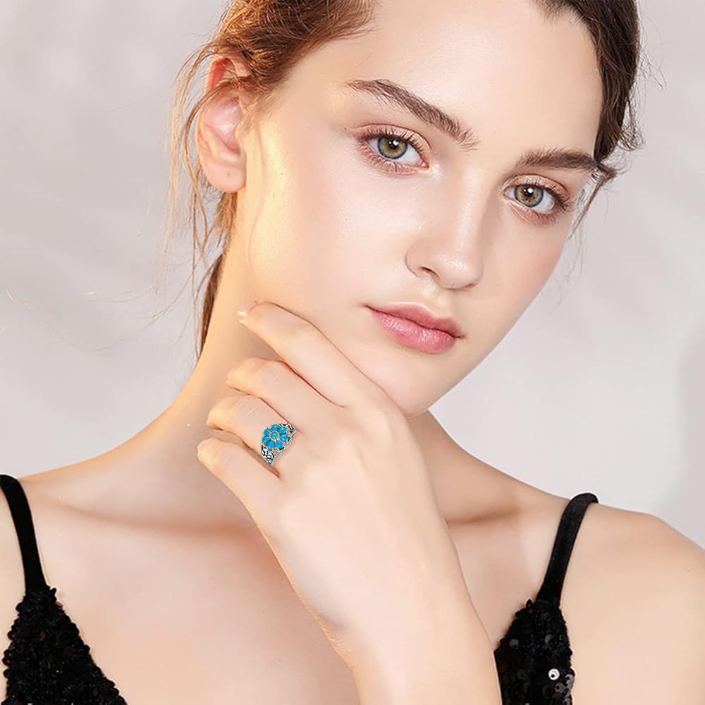 • 💖 خاتم الفيروز الغربي 💖 ارتدي خواتم زهرة الفيروز المستوحاة من الجنوب الغربي، لإضفاء لمسة من الألوان والسحر عليك. الحلقات الفيروزية المصنوعة من الفضة الإسترلينية ذات الطراز الكلاسيكي والعتيق مناسبة لمعظم أنماط الفساتين، وتجعلك تبدين أكثر أناقة.