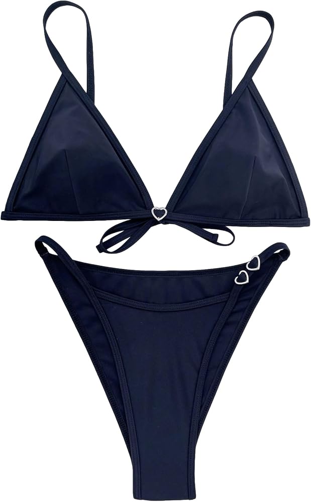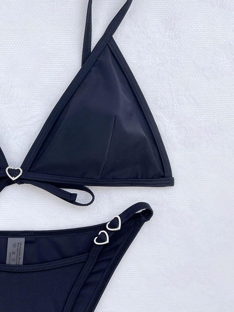 • Features: 2 piece bikini set, heart detail, wireless bra, halter