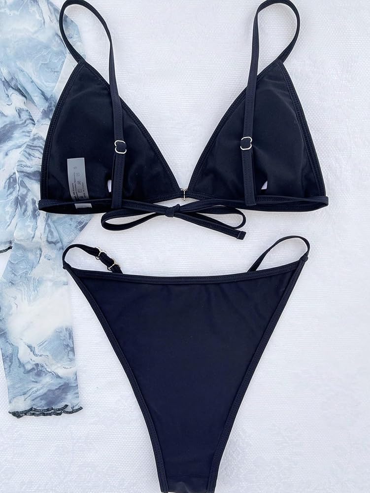ملابس سباحة نسائية من GORGLITTER بيكيني على شكل حلقة وربطة عنق مثلثة ذات قصة عالية