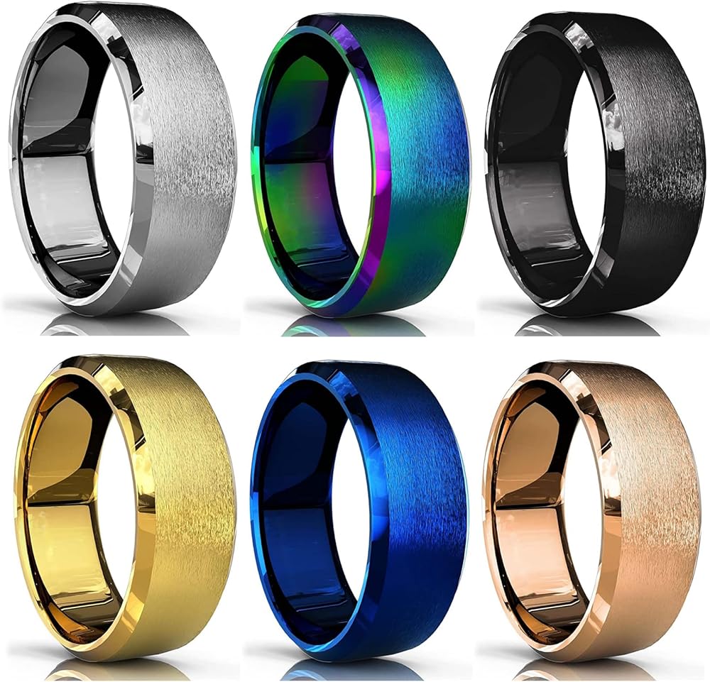 • ✔【تصميم لافت للأنظار】: تم تصميم الحلقات المصنوعة من الفولاذ التيتانيوم بألوان متعددة، أنيقة وأنيقة، يمكن أن تتناسب مع معظم ملابسك وتظهر شخصيتك، وتناسب معظم النساء والرجال.