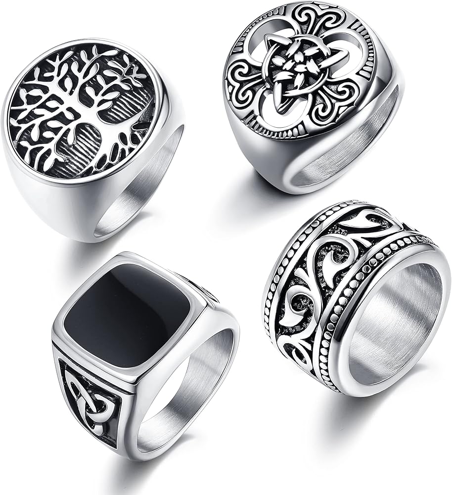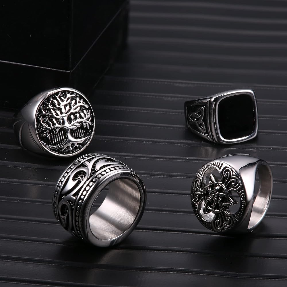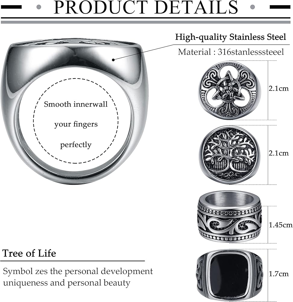 ✔️【خواتم سيغنت للرجال】 يتضمن طلب واحد 4 قطع من حلقات الفولاذ المقاوم للصدأ بأنماط مختلفة، وخاتم سلتيك أيرلندي عتيق، وخواتم عقدة ترينيتي، وخواتم أونيكس سوداء، وخواتم دائرية لشجرة الحياة. المنحوتات الرائعة والنمط القديم تضفي ملمسًا فاخرًا، وتجعلك تبدين أكثر جاذبية ورائعة.