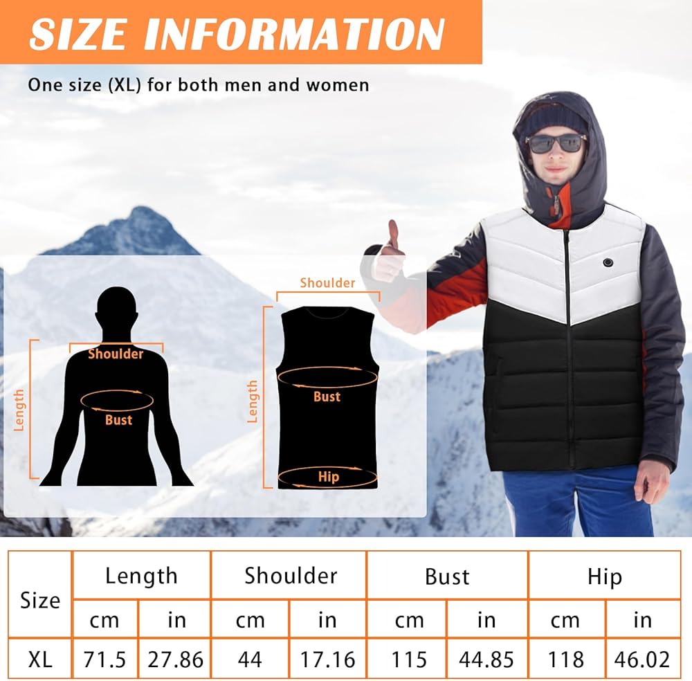 استخدام واسع النطاق: السترة الحرارية الخاصة بنا رفيعة وخفيفة الوزن، ويمكن وضعها بسهولة على جاكيت الثلج/المعطف/السترة/القميص. مناسب لمعظم المناسبات الخارجية في الشتاء البارد، مثل التزلج وصيد الأسماك والصيد وركوب الخيل والدراجات النارية والمشي لمسافات طويلة والتخييم وتسلق الصخور والجولف والمكتب اليومي وأي مكان تشعر فيه بالبرد!