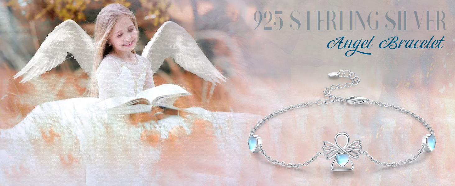 【🎁هدايا مجوهرات سوار الملاك حجر القمر المثالي🎁】سوار الملاك من الفضة الإسترلينية رائع ولامع بشكل جيد بما فيه الكفاية ويأتي مع صندوق مجوهرات أنيق، مثالي لأي مناسبة لتقديم الهدايا. سوار ملاك من حجر القمر مثالي كهدية للأم أو الابنة أو الصديقة أو الزوجة أو الجدة أو الأخت أو الأصدقاء في عيد الأم أو عيد الميلاد أو عيد الشكر أو الكريسماس أو أي يوم خاص