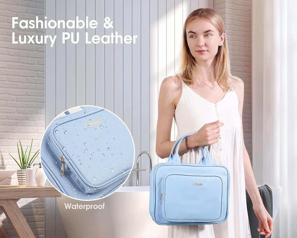 جلد البولي يوريثان المقاوم للماء: حقيبة أدوات الزينة الفاخرة مصنوعة من جلد البولي يوريثان المتين المقاوم للماء وقماش شبكي مريح، آمنة للاستخدام في البيئات الرطبة مثل الحمام أو منطقة الاستحمام. سهل التنظيف والتجفيف بسرعة.
