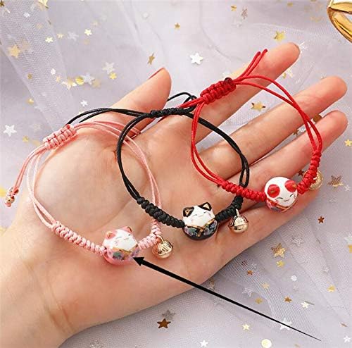 فنغ شوي محظوظ السيراميك القط Maneki Neko فورتشن حسن الحظ الثروة سوار الخرز الأساور قابل للتعديل الثروة الصحية الثروة الثروة الغنية رمز المال لحقيبة المحفظة سوار مفتاح سلسلة الهاتف المحمول