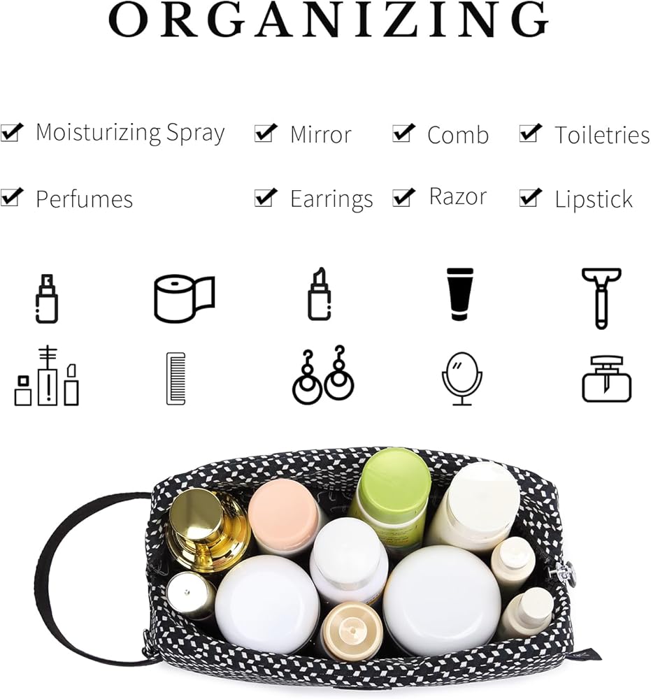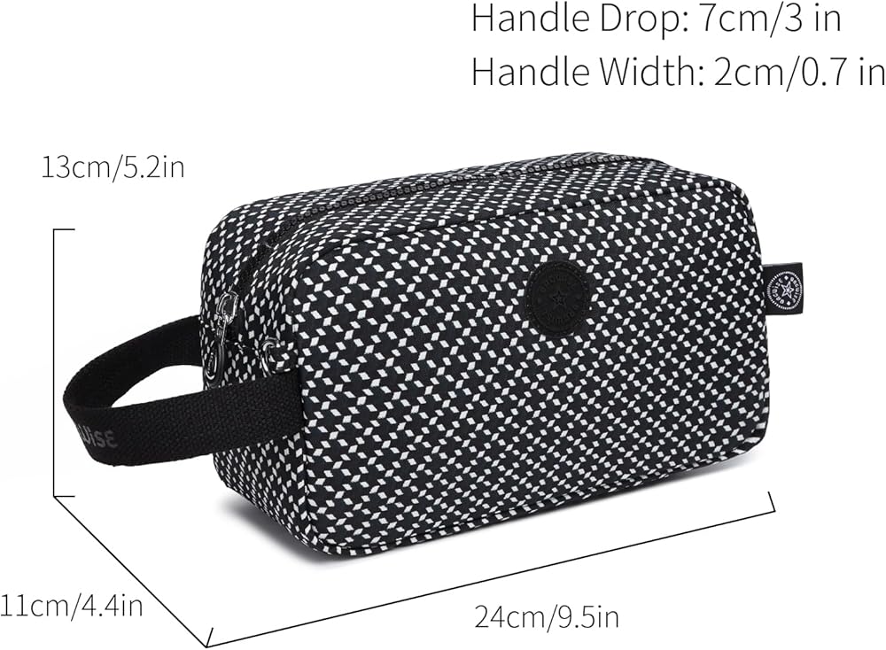 Size: 9.5Lx 5.2Hx4.4W Handle Drop: 3 inches. bagwise toiletry bag has a large capacity, enough to hold your daily belongings such as: make-ups, shaving cream, razor, toothpaste, toothbrush and other toiletries.