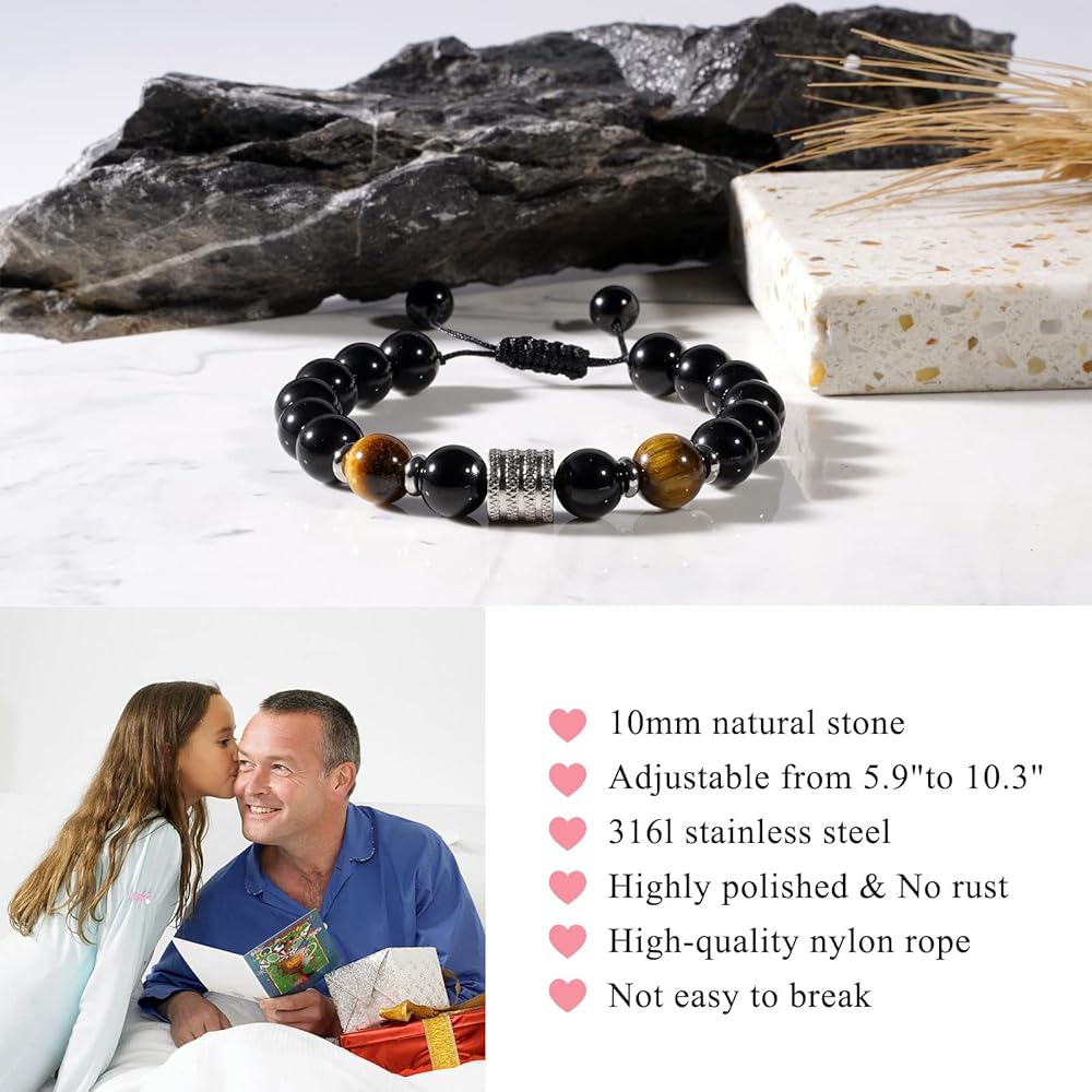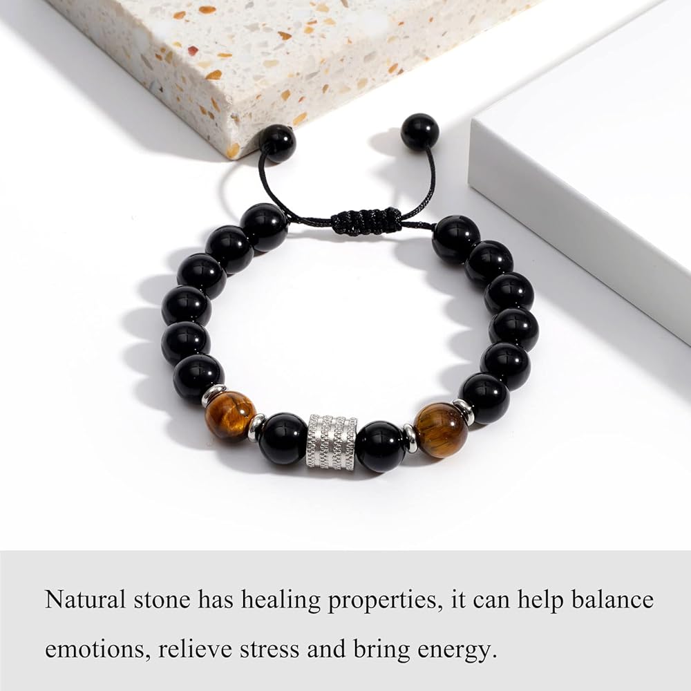 【الخامة: سوار الصديق هذا مصنوع من حجر عين النمر الطبيعي مقاس 10 مم وحجر العقيق الأسود. مع حلية من الفولاذ المقاوم للصدأ، مصقول للغاية، لا يصدأ. هدية مثالية لصديقك في أعياد الميلاد والكريسماس.