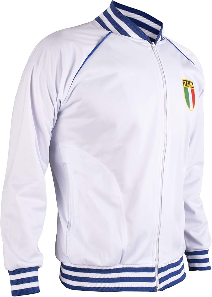 Italy / Italia Jacket Retro Football Tracksuit Zipped Jacket Men Top Regular Fit. Long sleeve. Full-Neck. comfortable and high quality, Machine washable. **Size Guide ***SMALL 170-175cm (60-65kg) CHEST - 104cm / 40.56" LENGTH - 64cm / 24.96" SLEEVE - 61cm / 23.79" SHOULDER - 46cm / 17.94" ***MEDIUM 175-180cm (65-70kg) CHEST - 110cm / 42.9" LENGTH - 66cm / 25.74" SLEEVE - 63cm / 24.57" SHOULDER - 49cm / 19.11" ***LARGE 180-185cm (70-75kg) CHEST - 114cm / 44.46" LENGHT - 68cm / 26.52" SLEEVE - 64cm / 24.96" SHOULDER - 51cm / 19.89" ***EXTRA LARGE 185cm- (75kg- ) CHEST - 116cm / 46" LENGTH - 73cm / 29" SLEEVE - 68cm / 27" SHOULDER - 54cm / 21.25"