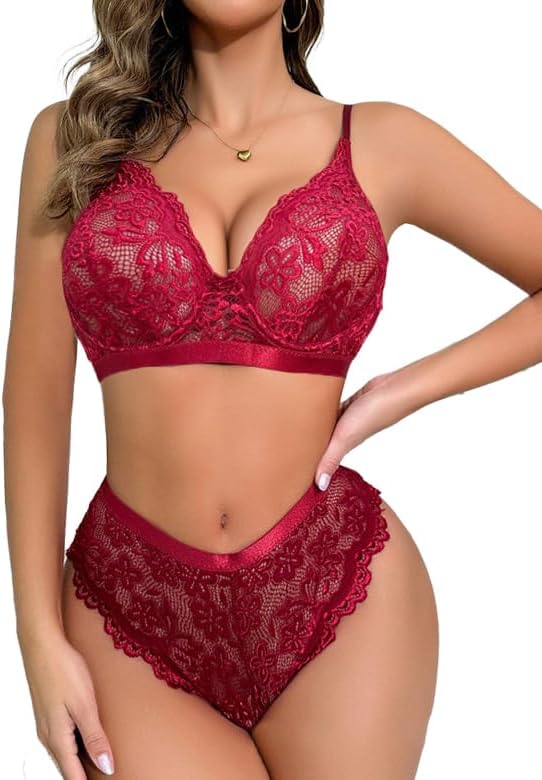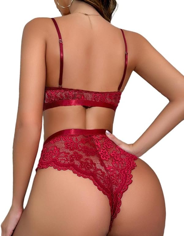 • Features: This deep v neck sheer lingerie set featuring a deep v-neckline, sheer lace cups, double adjustable spaghetti strap, a wider elastic underbust with a hook and eye back closure, perfect for hold up your flattering chest, and a matching high waist panty, it can helping to conceal mommy tummy, make you confident in front of your partner.