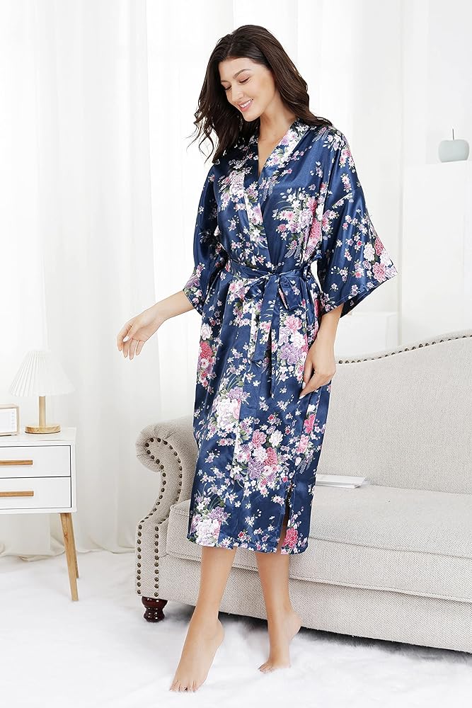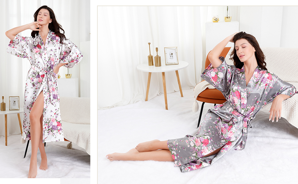 ملمس جميل: هذا الرداء النسائي المصنوع من الساتان ذو الأزهار لا يتميز بمظهر فاخر فحسب، بل يتميز أيضًا بملمس جيد. مصنوعة من البوليستر خفيف الوزن، أردية الكيمونو الطويلة النسائية ناعمة جدًا ومريحة في الارتداء. لجعله رقيقًا ولطيفًا، قمنا بطباعة الزهور على الرداء بالكامل، بما في ذلك ربطة عنق الوشاح. بالإضافة إلى ذلك، تأتي هذه الأرواب الطويلة المثيرة من الساتان مع أربطة أمان داخلية للحفاظ على الرداء مغلقًا وملائمًا.