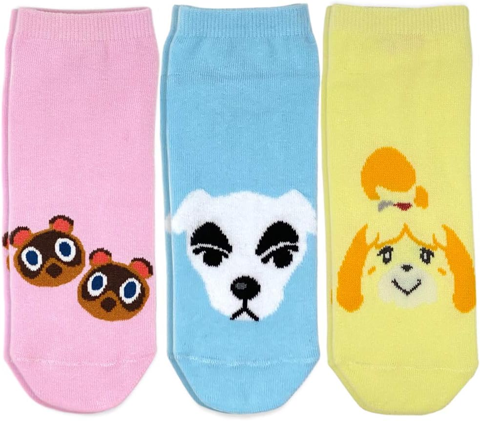 قم بالإحماء في ليالي الجزيرة الباردة مع مجموعة الجوارب هذه المكونة من ثلاثة تصميمات مختلفة مستوحاة من انيمال كروسينج: نيو هورايزونز. تتميز بتصميم تيمي وتومي، كيه كيه سلايدر وايزابيل.