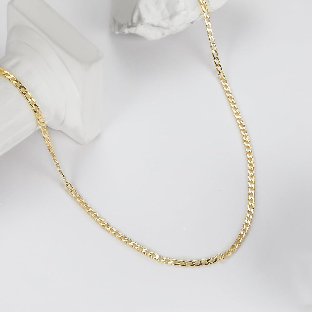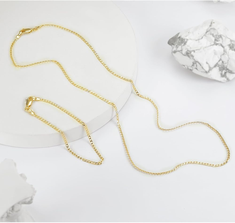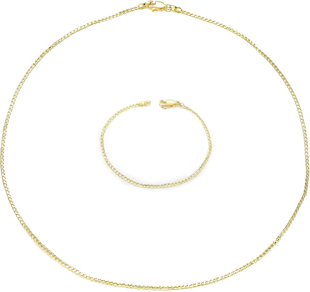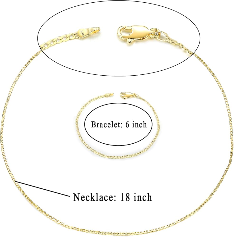 • مجموعة مجوهرات مطلية بالذهب: ستحصل على قلادة مقاس 18 بوصة وسوار 6 بوصة. عرض القلادة: 1.7 ملم. عرض السوار: 1.7 ملم.