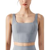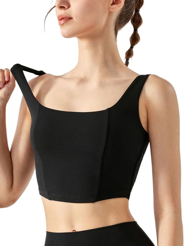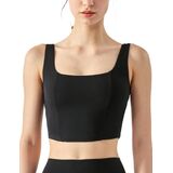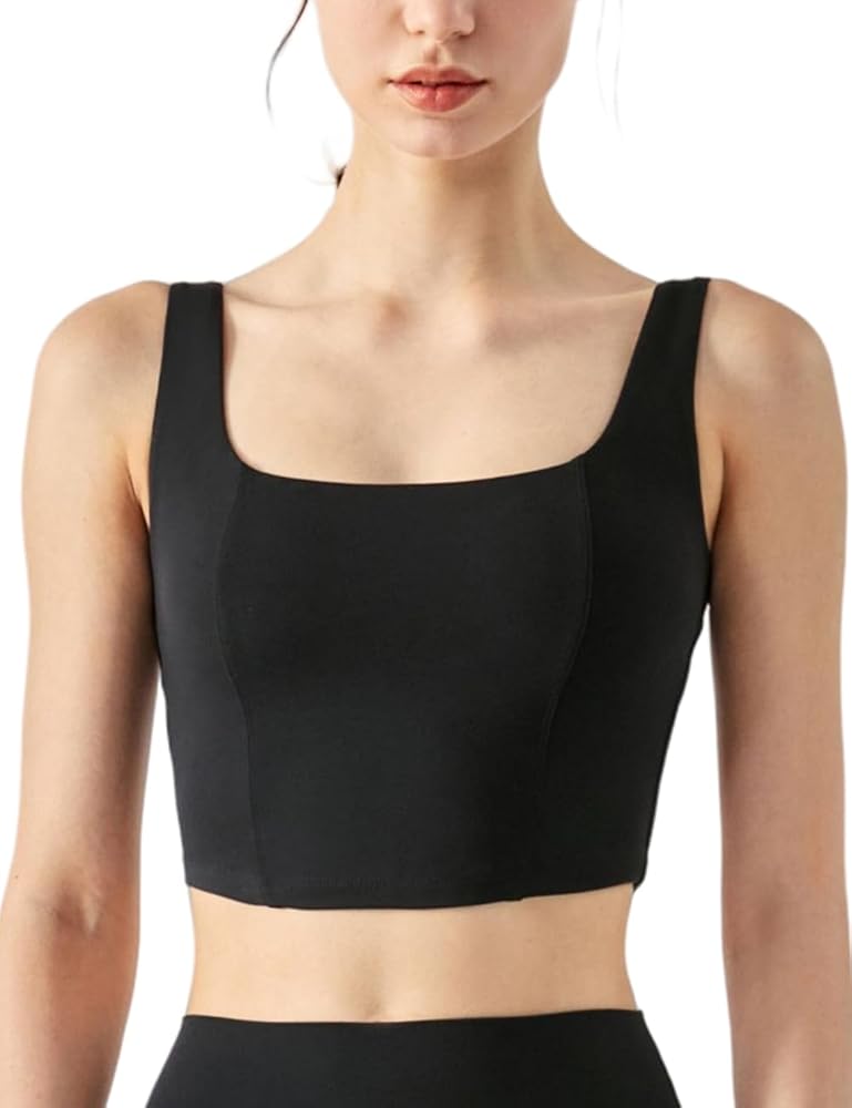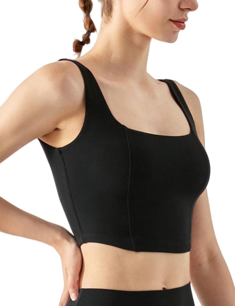 UNIQUE DESIGN: Square Neck can show your sexy collarbone perfectly. Fishbone Line and Arched Hem design makes you visually slim and look more charming. The Longline Sports Bra For Women offers more coverage and support. Removable Pads are easy to put in or take out,always retains its shape and prevent bra bulges.