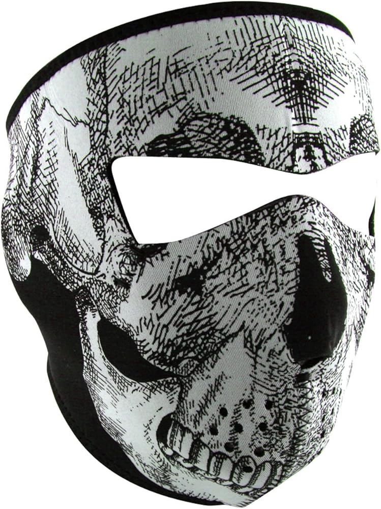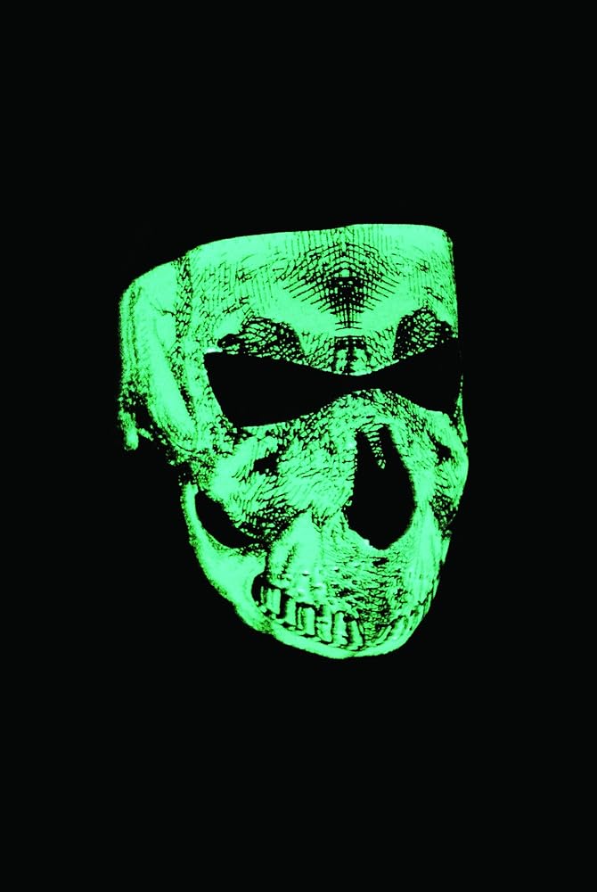 قناع وجه من النيوبرين WNFM002G من زان هيدجير - يتوهج في الظلام - تصميم وجه جمجمة باللونين الأسود والأبيض