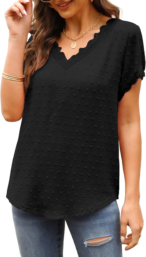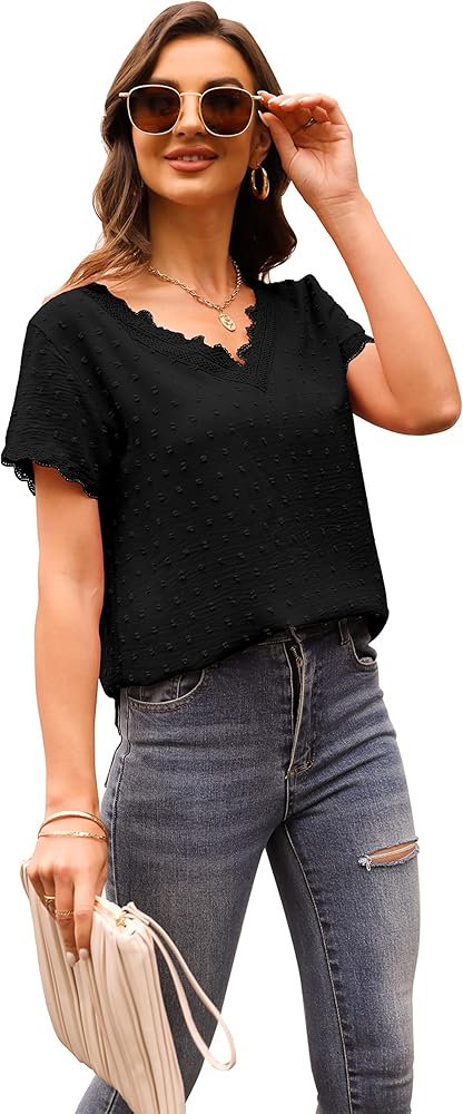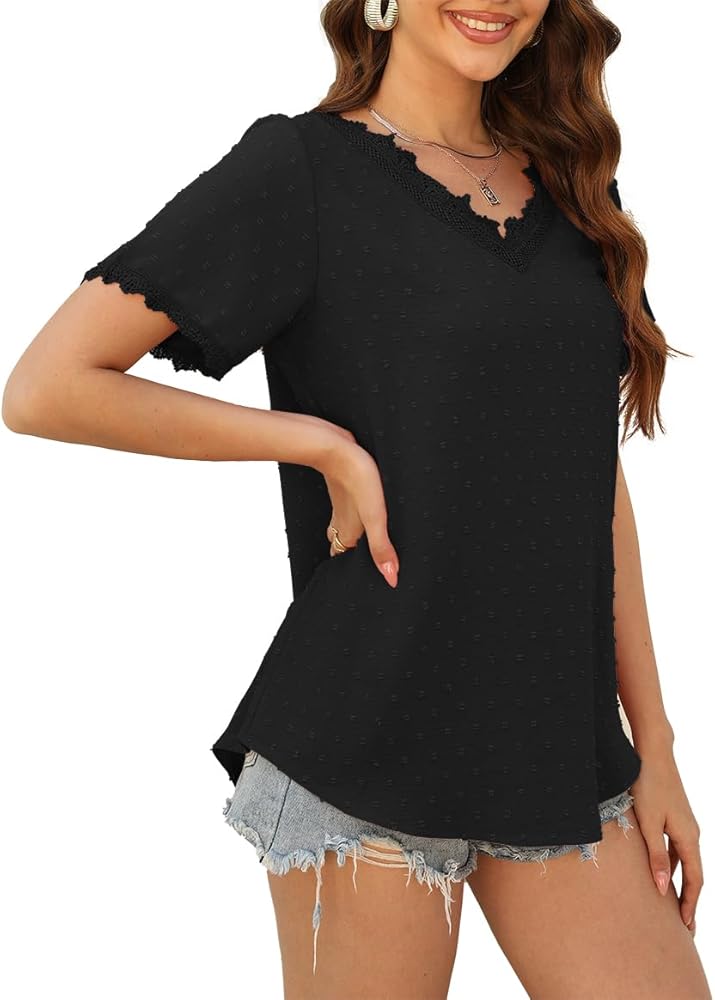التصميم: التفاصيل يمكن أن تجعلك أنحف وتظهر شخصيتك بشكل أفضل. تصميم مثالي من الدانتيل على شكل حرف V وحاشية فضفاضة، أزياء كاجوال دون فقدان الأناقة، هدية مثالية للأم والأصدقاء!