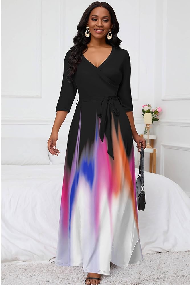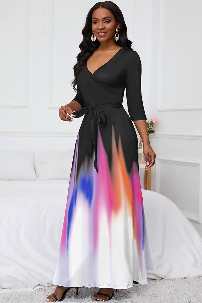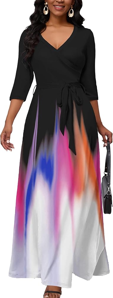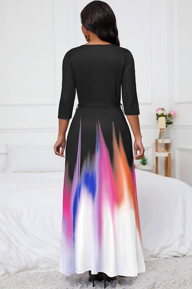 【تصميم أنيق】تتميز الفساتين الكاجوال النسائية برقبة على شكل حرف V، وأكمام 3/4، وطول يصل إلى الأرض، وفستان طويل طويل مع حزام. التصميم الفريد واللون المتدرج لهذا الفستان سيجعلك أكثر أناقة وتصبح الشخص الأكثر إبهارًا بين الناس.