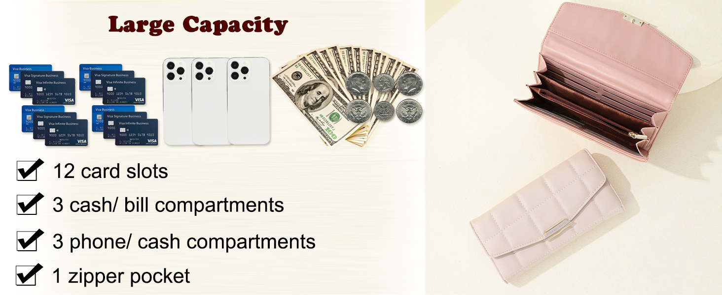 • الحجم: 7.68 بوصة طول، 3.94 بوصة ارتفاع و1.18 بوصة عمق، الوزن 194 جرام، كبيرة بما يكفي لحمل ما يصل إلى 3 هواتف محمولة ونقود وبطاقات بنكية، هذه المحفظة مثالية للاستخدام اليومي أو السفر.