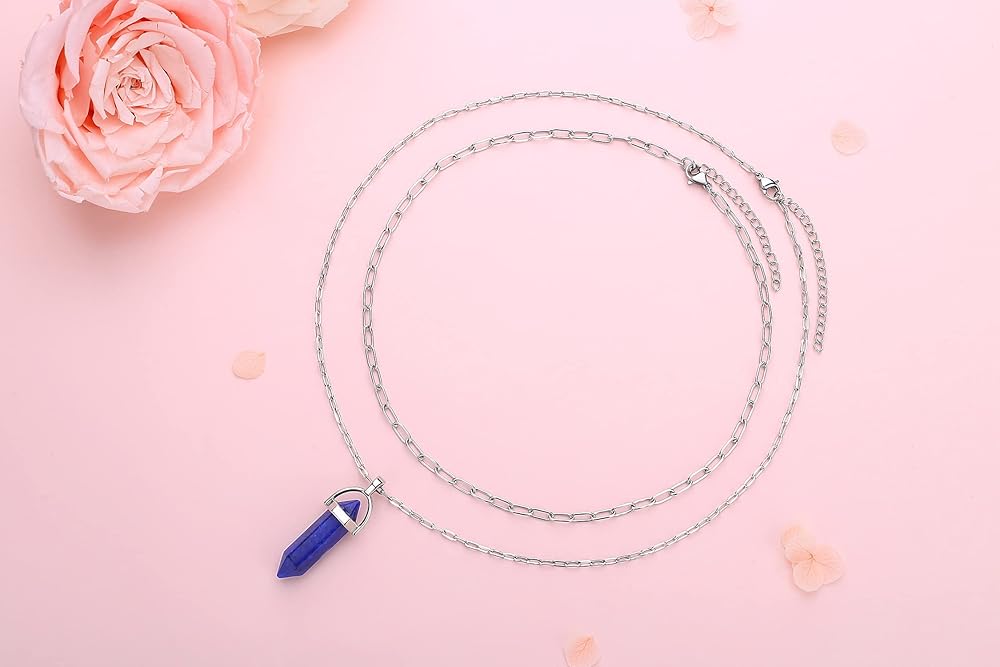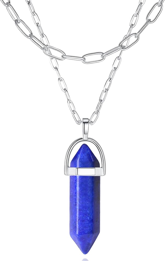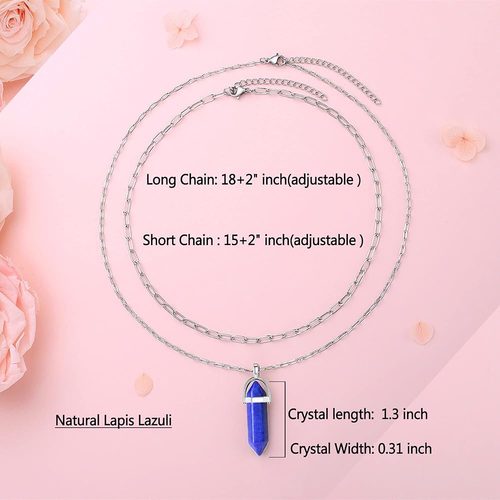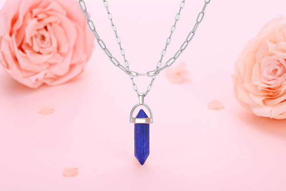 هدايا قلادة كريستال: قلادة أنيقة من اللازورد العلاجي من الكريستال بحجر حقيقي قلادة عصرية ذات طبقات من المجوهرات للنساء والفتيات والأمهات والزوجات والأصدقاء الجيدين. أو هدية مثالية لحفلات أعياد الميلاد، والهالوين، والكريسماس، والذكرى السنوية، وعيد الأم، وعيد الحب، واحتفالات التخرج.