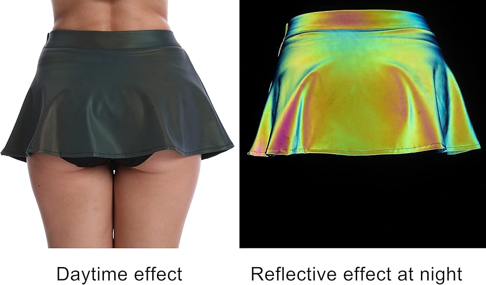 • النمط: تنورة قصيرة عاكسة بألوان قوس قزح مع سحاب للإغلاق، توجد سراويل داخلية للسلامة بالداخل لذلك لا داعي للقلق بشأن التعري. ببساطة والأزياء. يمكن أيضًا أن يُظهر منحنى جسمك الساحر عند ارتدائه على جسمك.