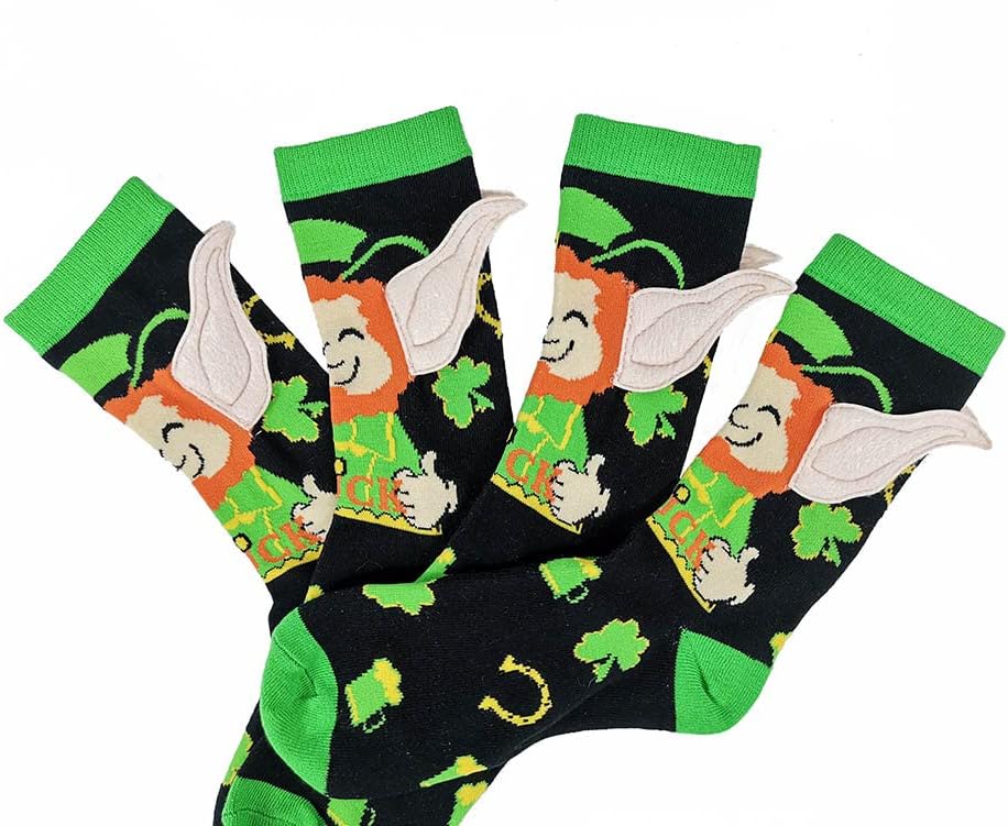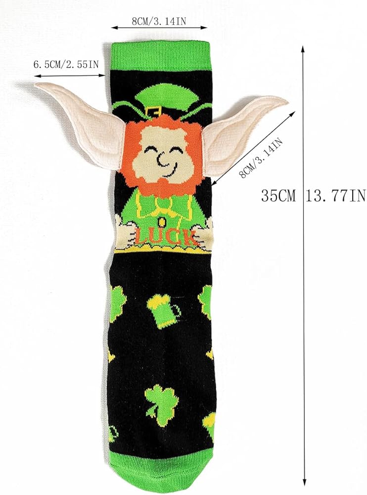 جوارب عيد القديس باتريك من ايلودي او، جوارب ايرلندية مع اذنين، جوارب لاكي نوفيلتي للرجال والنساء