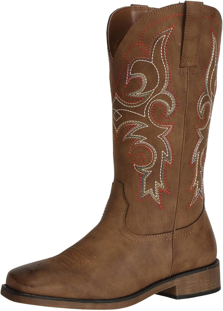 PREMIUM EMBROIDERY: These cowgirl boots with classic western embroidery on shaft and foot. White stitching accents the brown faux leather upper, adds uniqueness and fashion of the western boot.
