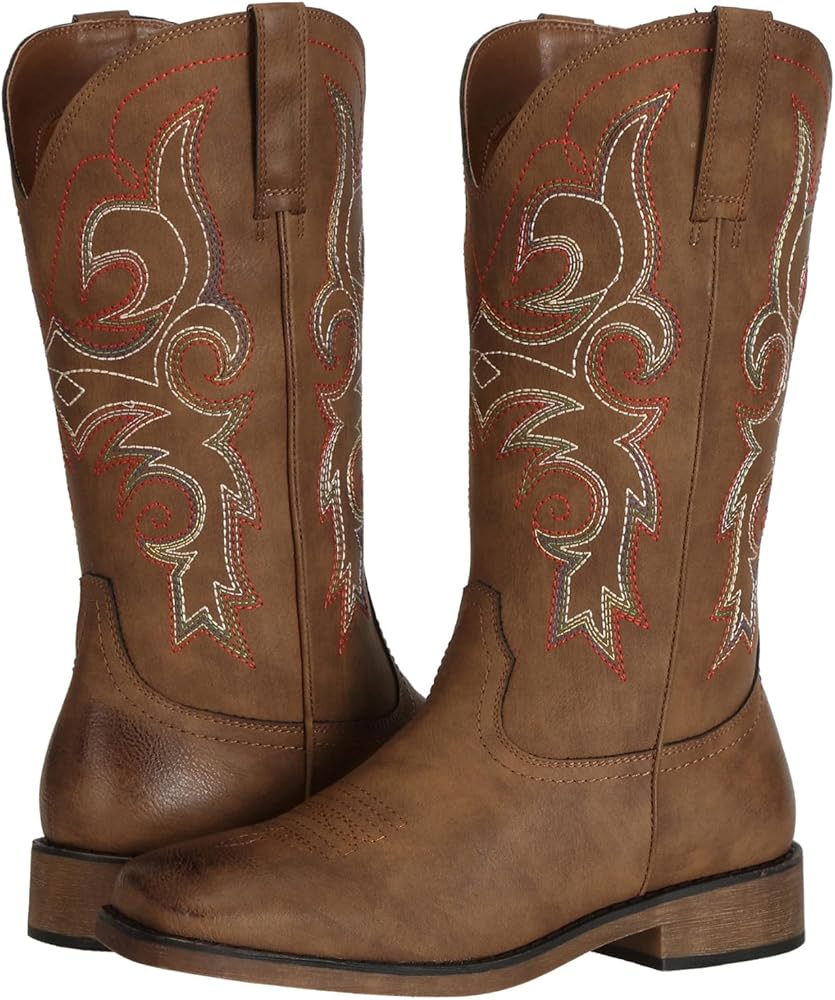 COMFORTABLE COWBOY BOOTS FOR WOMEN: Wide Square toe / Convenient Pull Tabs/ Breathable Mesh Lining / Stable Block Heel / Wide Calf / Non Slip Rubber Sole.