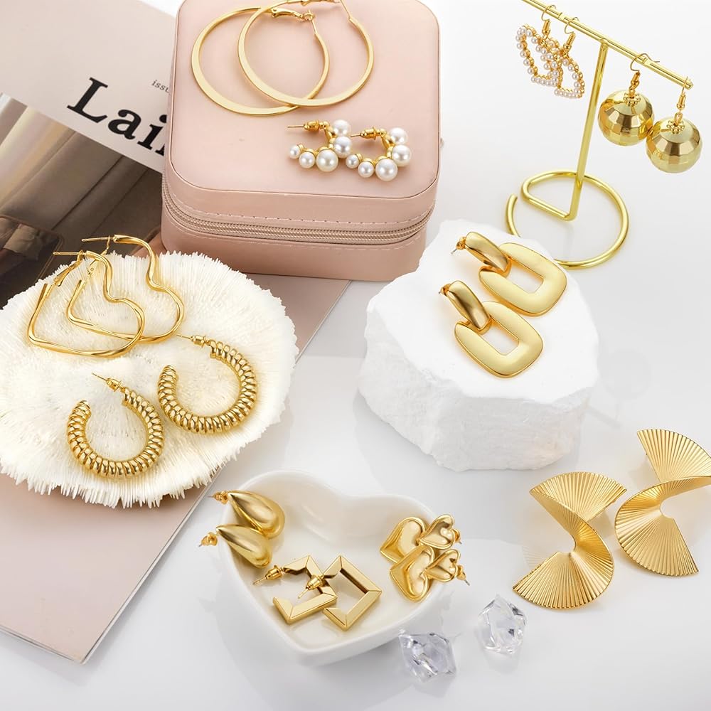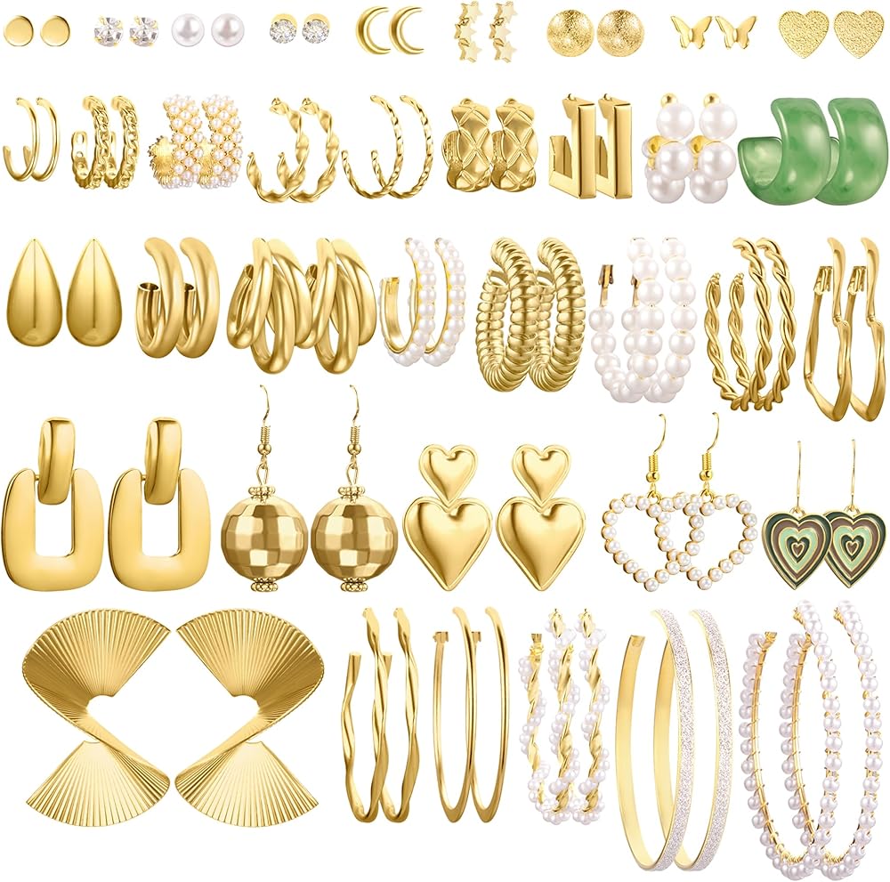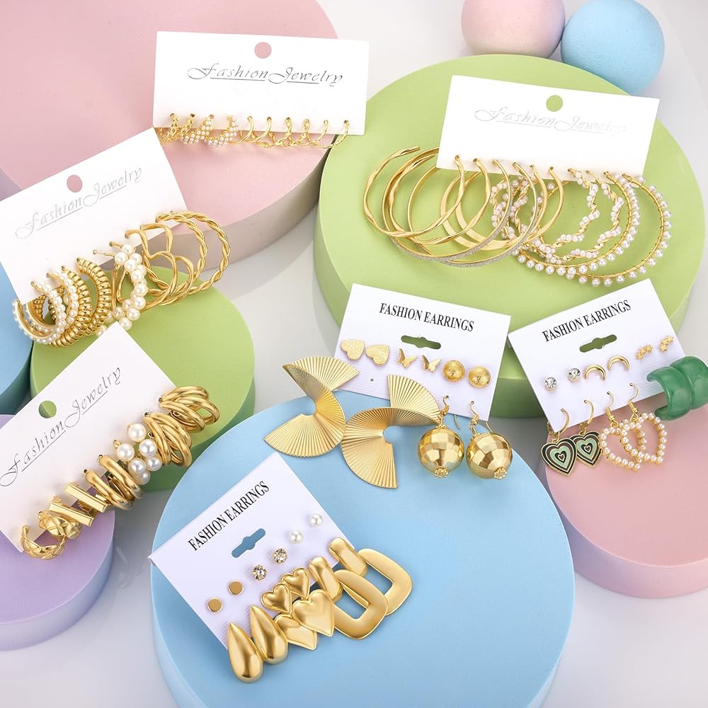 37 زوجًا في عبوة واحدة: تأتي هذه العبوة القيمة مع 37 زوجًا من الأقراط المختلفة مثل الأقراط المرصعة والأقراط المتدلية على شكل قلب والأقراط الحلقية الصغيرة والأقراط الحلقية المكتنزة، مما يضيف مجموعة شاملة جميلة لمجموعة الأقراط الخاصة بك.