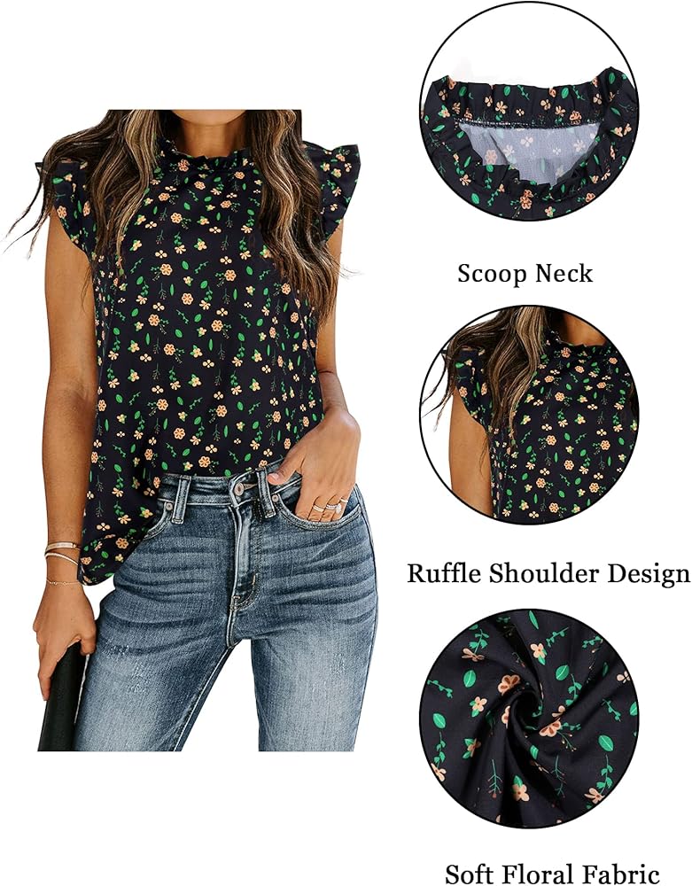 المزايا: قمصان بدون أكمام بأكمام مكشكشة، تصميم طباعة الفهد أو الأزهار، خط عنق مكشكش، بدون أكمام، رقبة عالية، مقاس فضفاض، شيفون، لطيف، كاجوال، أنيق ورومانسي. التصميم المكشكش يجعلها فريدة من نوعها.