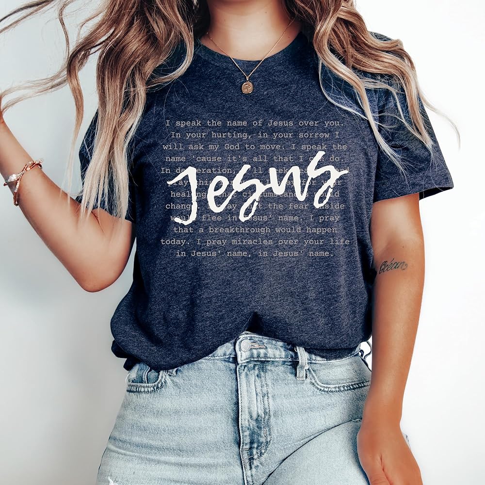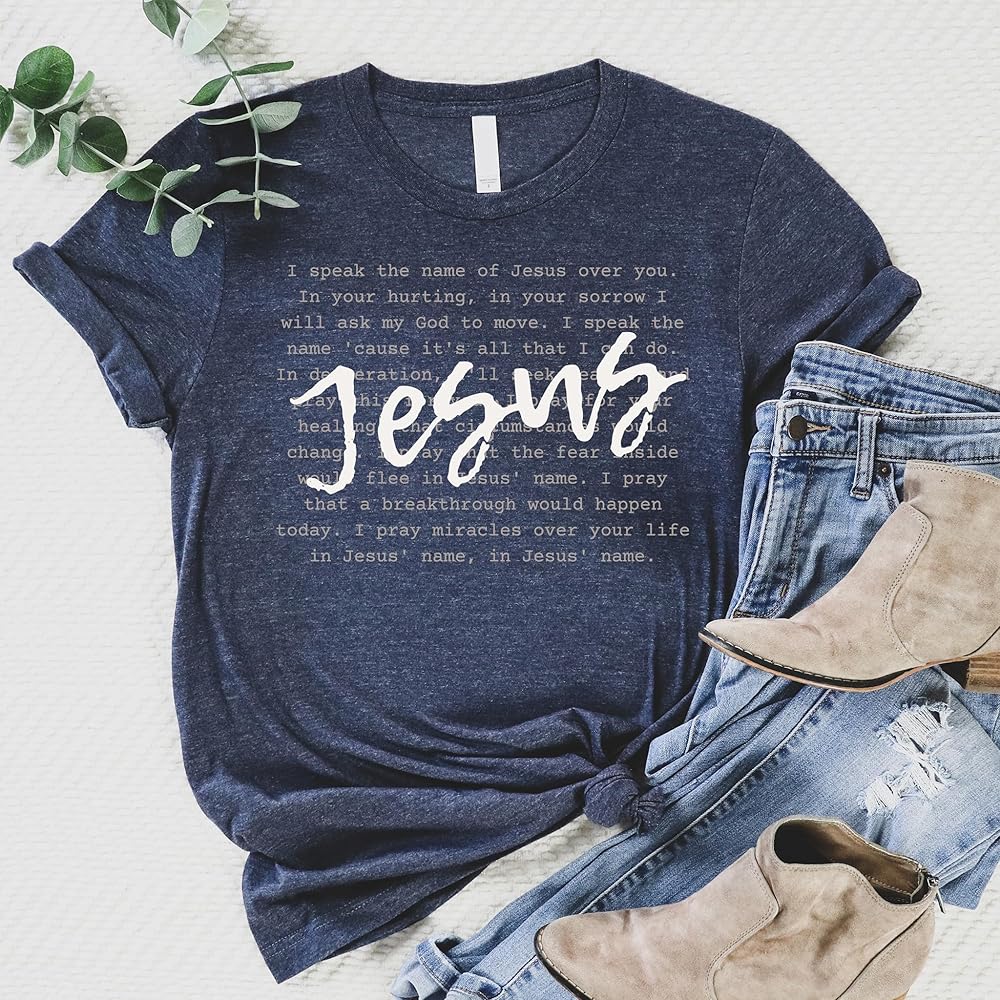 الحب في الإيمان | أنا أتكلم اسم يسوع كم قصير | قمصان مسيحية مطبوعة برسوم جرافيك | الملابس المبنية على الإيمان | هدايا عيد الفصح