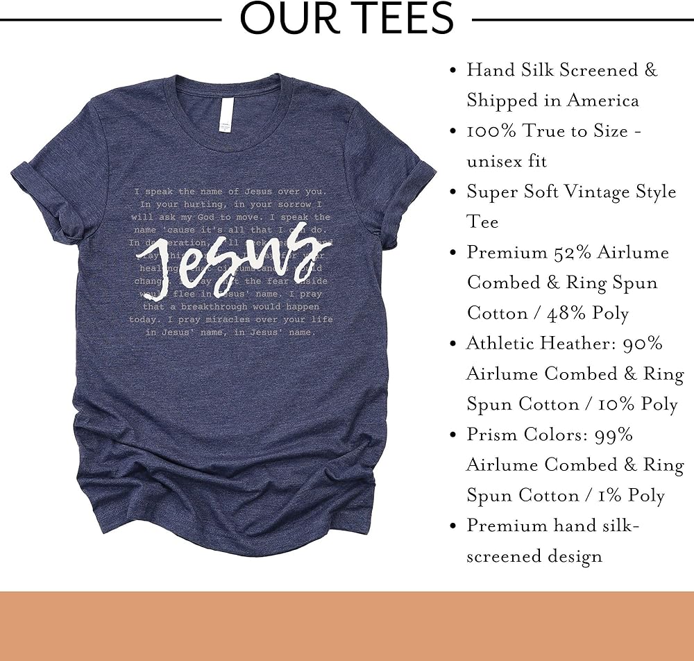 High-Quality Materials: Our faith-based Christian apparel t-shirts are crafted using a premium blend of 52% Airlume combed and ring-spun cotton, combined with 48% poly. This fabric combination ensures durability, comfort, and a soft touch while keeping focus on the glory of God