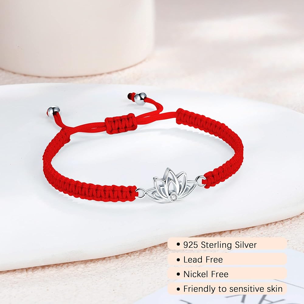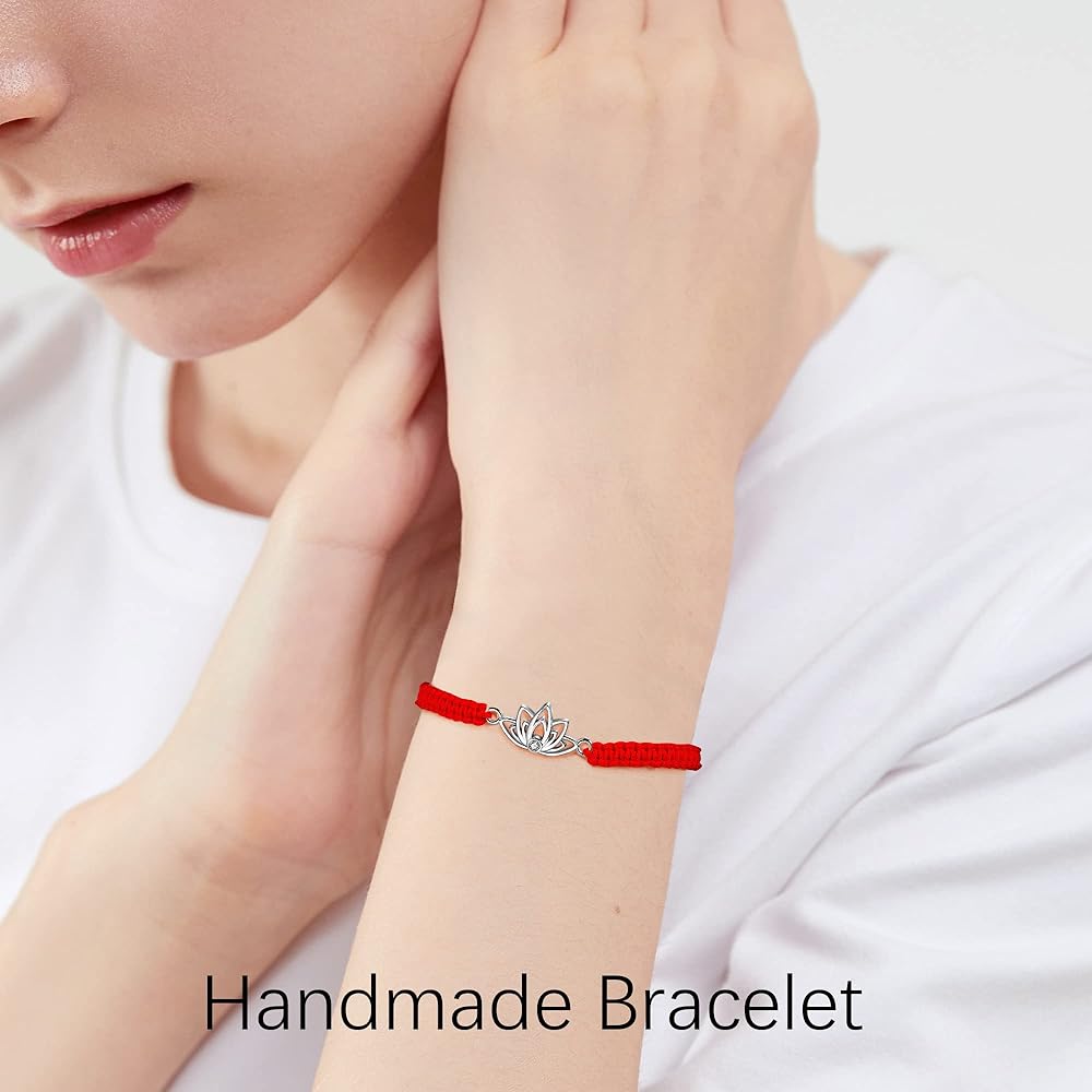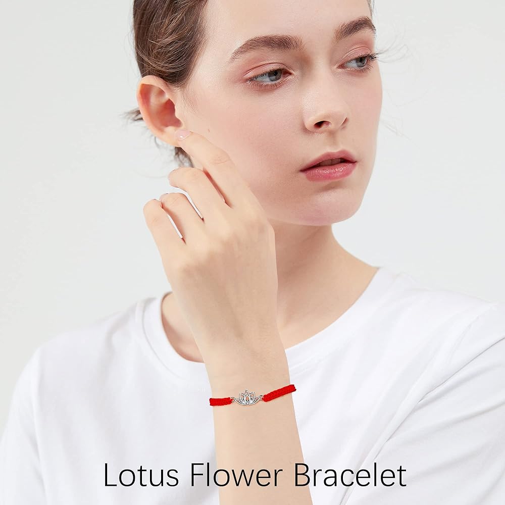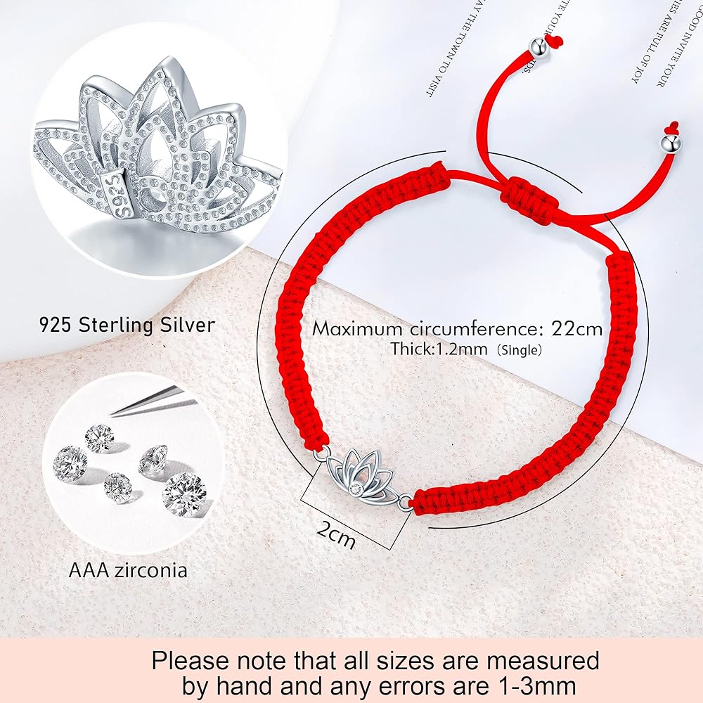 ❤ المادة: زهرة اللوتس وخرز السوار مصنوعة من الفضة الإسترلينية عيار 925 العالمية. مرصع بالزركون AAAAA. خالية من النيكل والرصاص، وصديقة للبشرة الحساسة. السلاسل منسوجة يدويًا من سلك نسيج قوي. سوار مصنوع يدويًا من حبل، خفيف ومتين