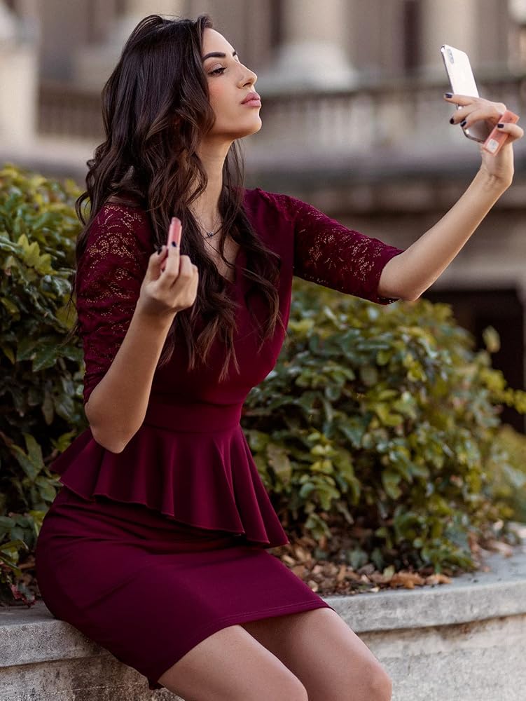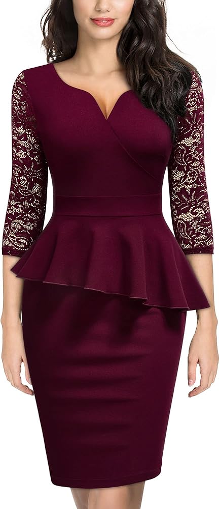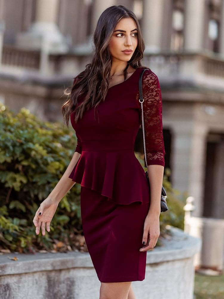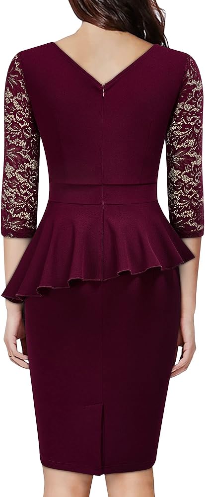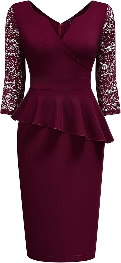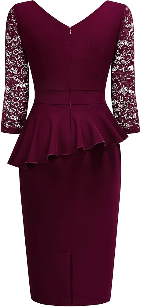 تصميم دانتيل زهور متباين، قصة ضيقة، سحاب على الظهر، طول الركبتين.