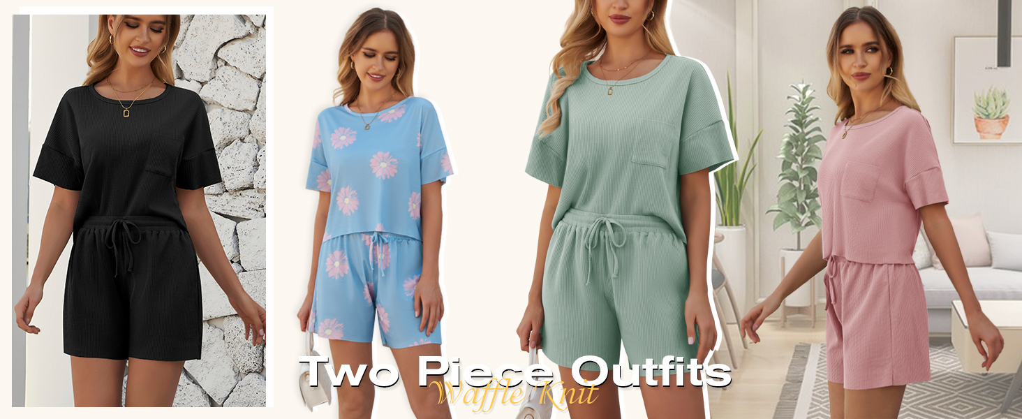 أطقم صالة متعددة الاستخدامات: ملابسنا المكونة من قطعتين مصنوعة من قماش وافل مسامي، تجمع بين الراحة والأناقة. مثالي لمختلف المناسبات، سواء كان ذلك للاسترخاء في المنزل أو الخروج أو الاستمتاع بعطلة.