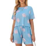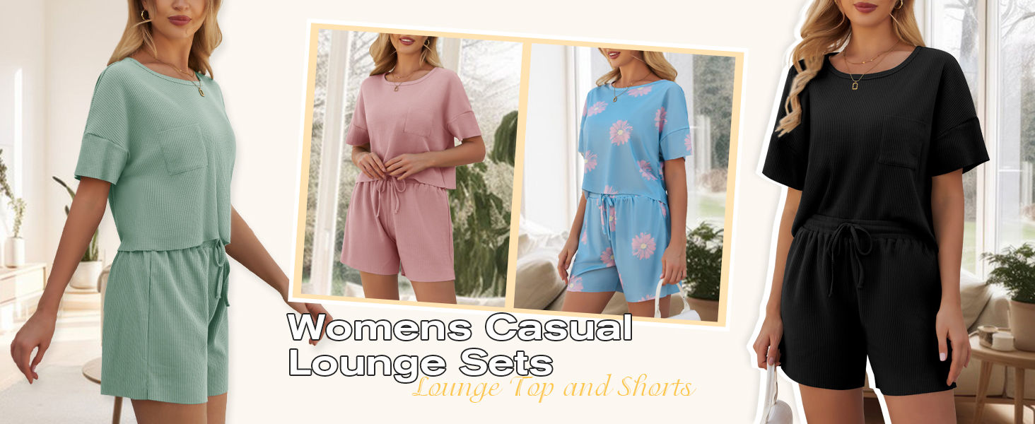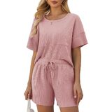 الشورت: حزام الخصر المرن المزود برباط على الشورت يسمح بسهولة التعديل والملاءمة المثالية. مقاس مريح، أطقم قصيرة للسيدات مكونة من قطعتين.